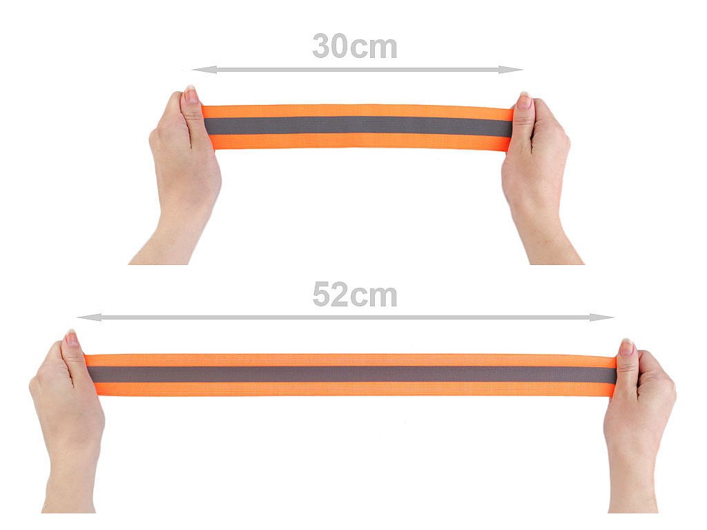 Zářivá oranžová pruženka s reflexním středovým proužkem je velmi praktická. Díky reflexnímu pásku bude vaše oblečení lépe vidět. Je elastická (tažná), po roztažení se vrátí zpět do původního stavu.