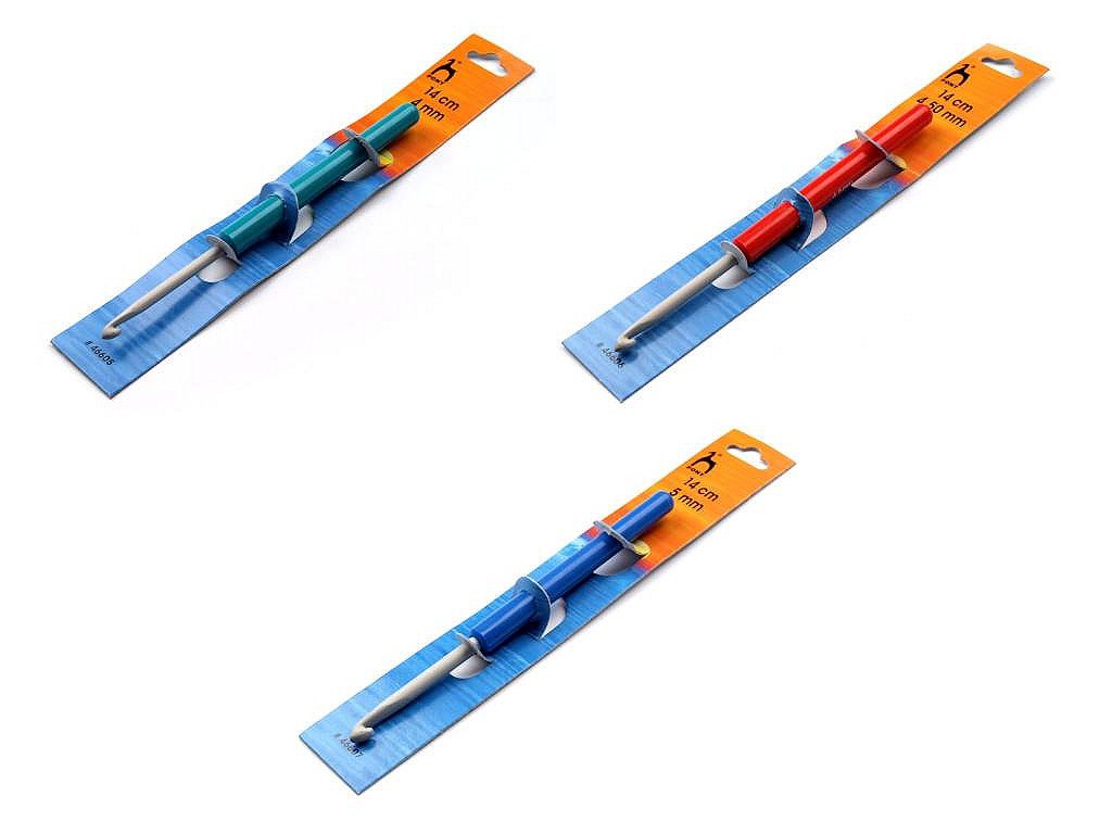 Háček je určen na háčkování vlny. Je vyroben z kvalitní slitiny hliníku a pro snadnější a pohodlnější uchopení je opatřen plastovou rukojetí.