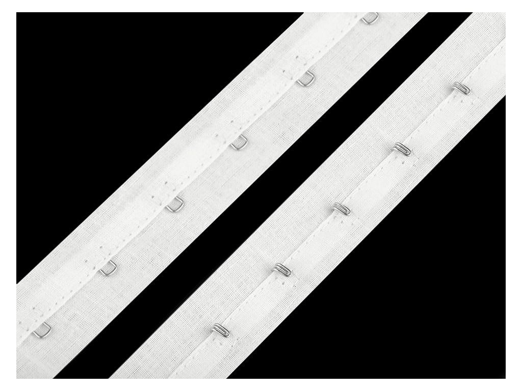 Korzetové zapínání je užitečný pomocník v textilní galanterii. Na kvalitním popruhu jsou pevně připevněny háčky. Balení obsahuje dvě cívky, které obsahují háčky a protikusy (vyrobeny z oceli odolávající praní).