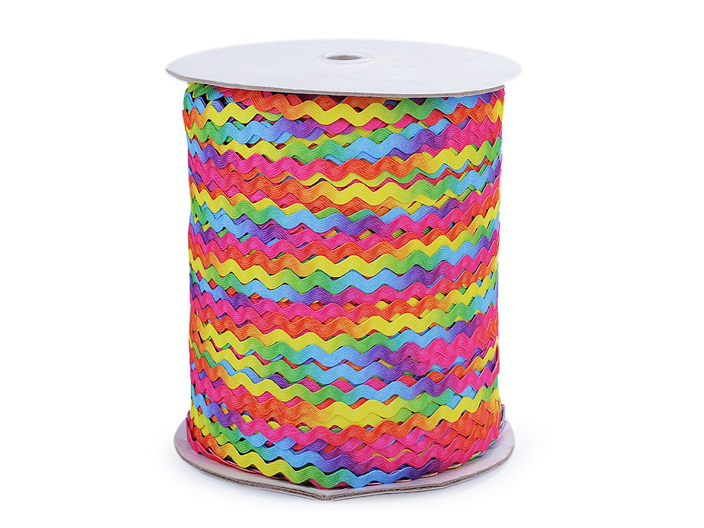 Duhově zabarvenou hadovku využijete k ozdobení mikin, tepláků, triček, divadelních nebo tanečních kostýmů. Hodí se např. ke zdobení velikonočních vajíček. Je jednostranná.
