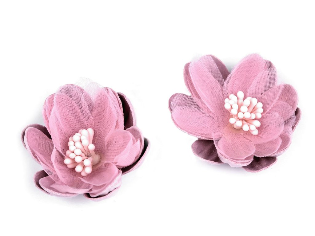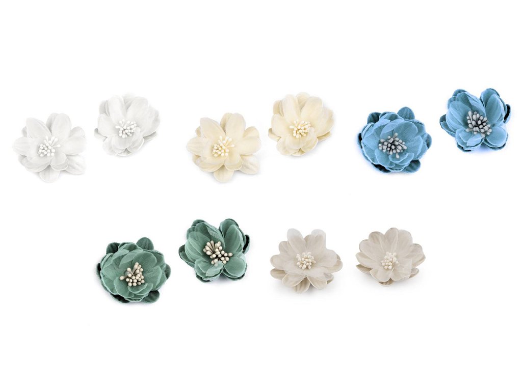 Textilní květy s pestíky dokonale doplní vaše květinová aranžmá, ikebany nebo věnce. Jsou detailně propracované. S květy nevšedně ozdobíte také čelenky, sponky do vlasů či fascinátory. Můžete je přilepit i přišít.