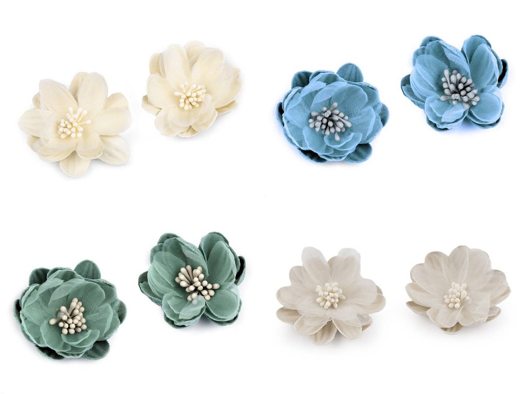 Textilní květy s pestíky dokonale doplní vaše květinová aranžmá, ikebany nebo věnce. Jsou detailně propracované. S květy nevšedně ozdobíte také čelenky, sponky do vlasů či fascinátory. Můžete je přilepit i přišít.