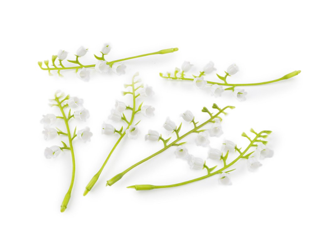 Umělé stonky konvalinek můžete zakomponovat do dekoračních věnců, čelenek do vlasů, ale také jsou vhodné na výrobu svatebních voniček.