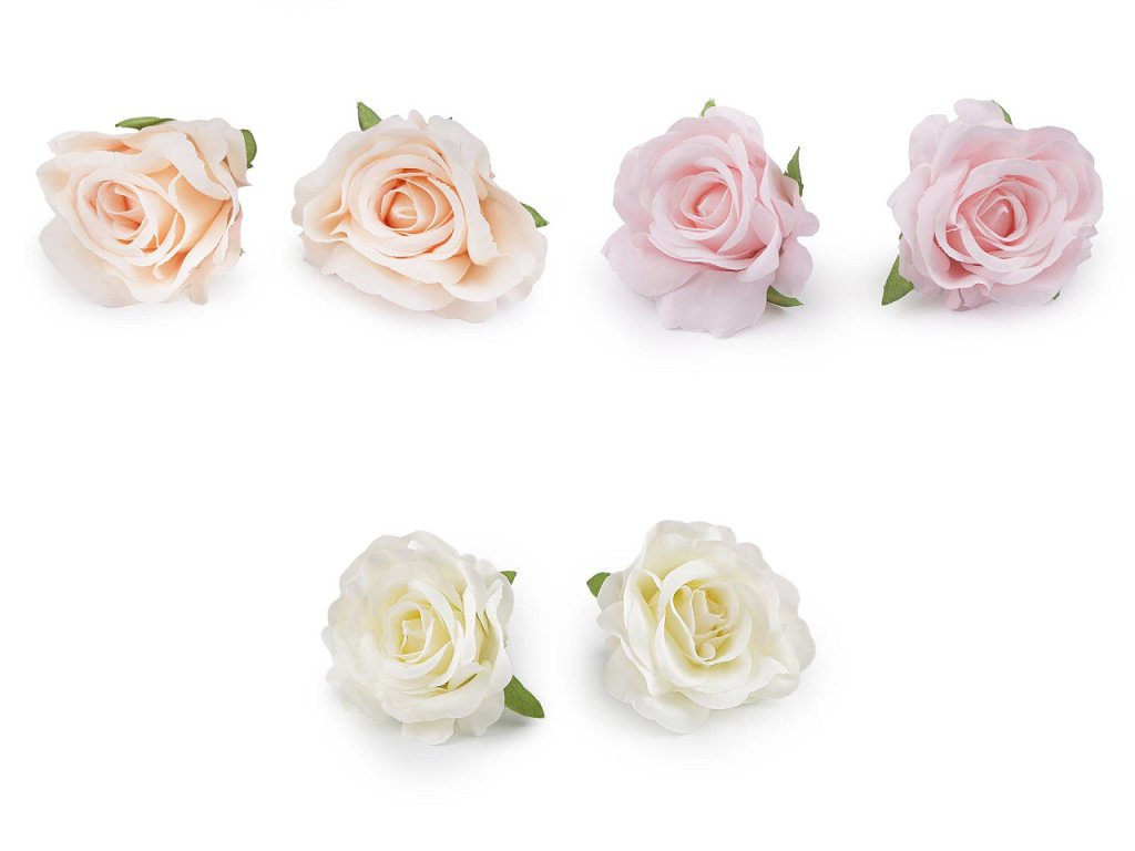Květy růže můžete zakomponovat na dekorační věnce, do různých aranžmá, ale také do vlasových čelenek apod. Do stonku lze zasunout drát s průměrem 2 mm.