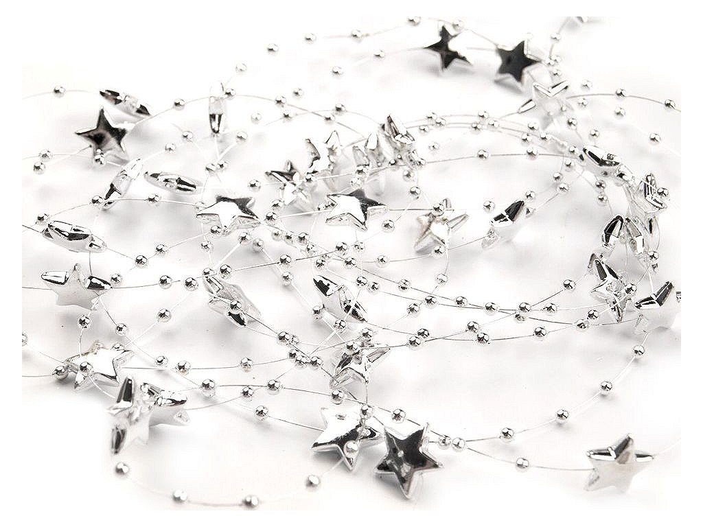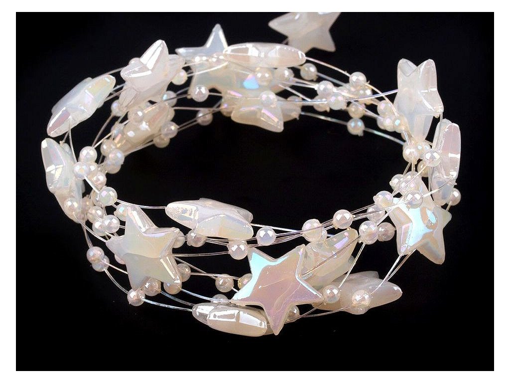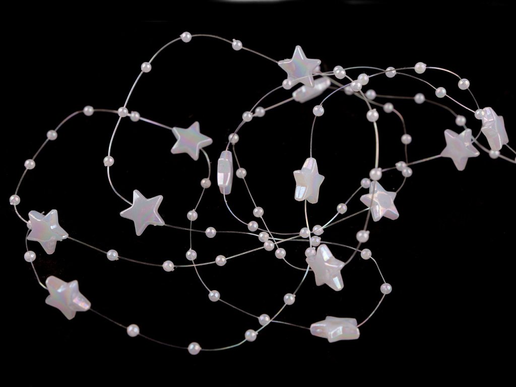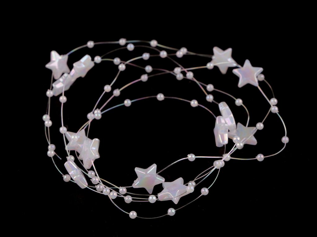Dekorační perličky s hvězdičkami na silonu využijete jako ozdobný řetěz na věnce, kytice, slavnostní tabule, atd.