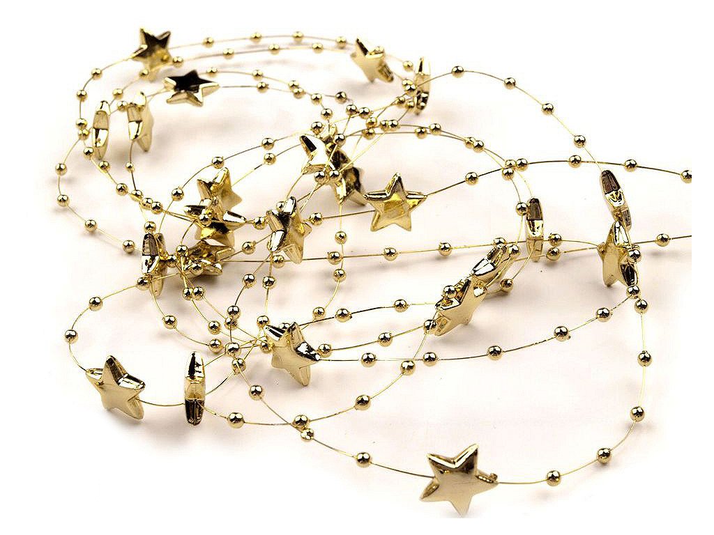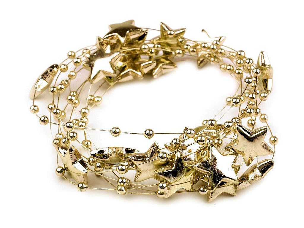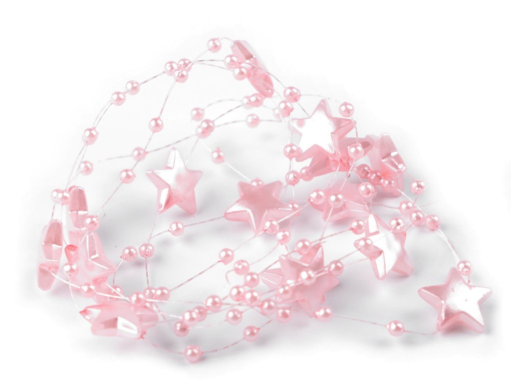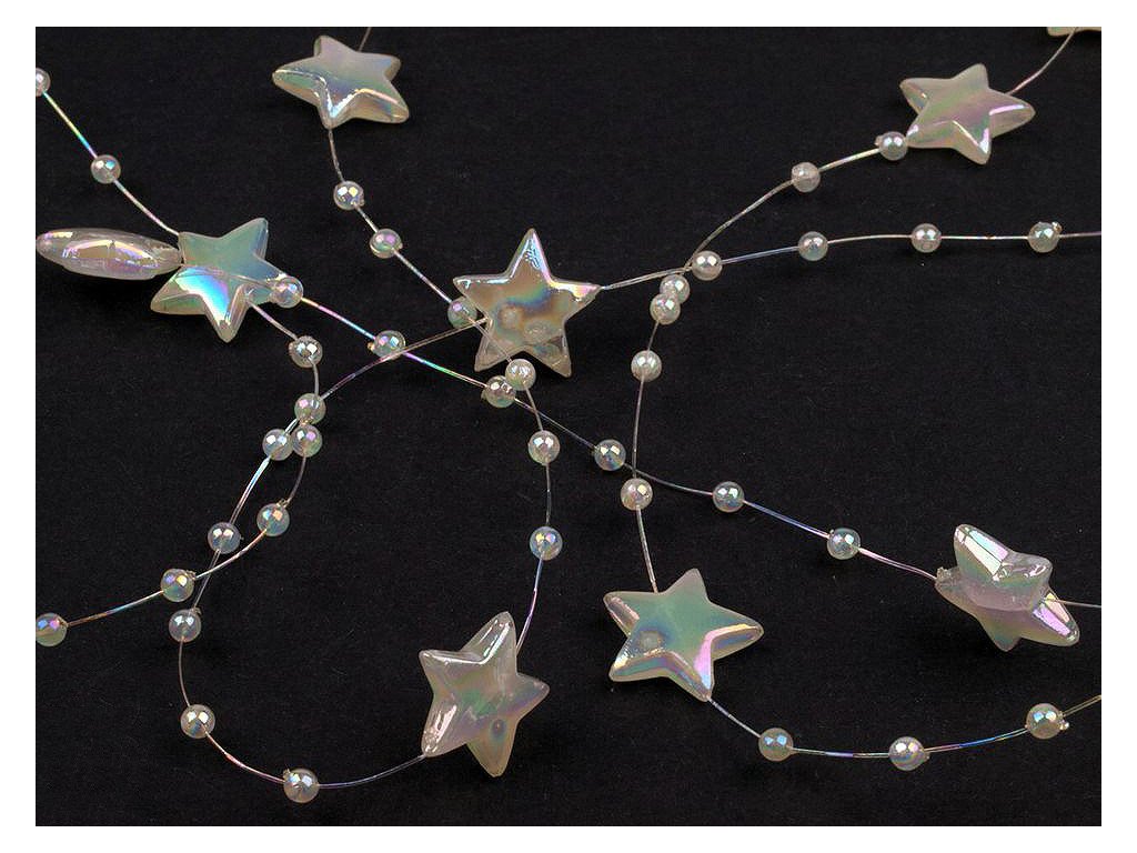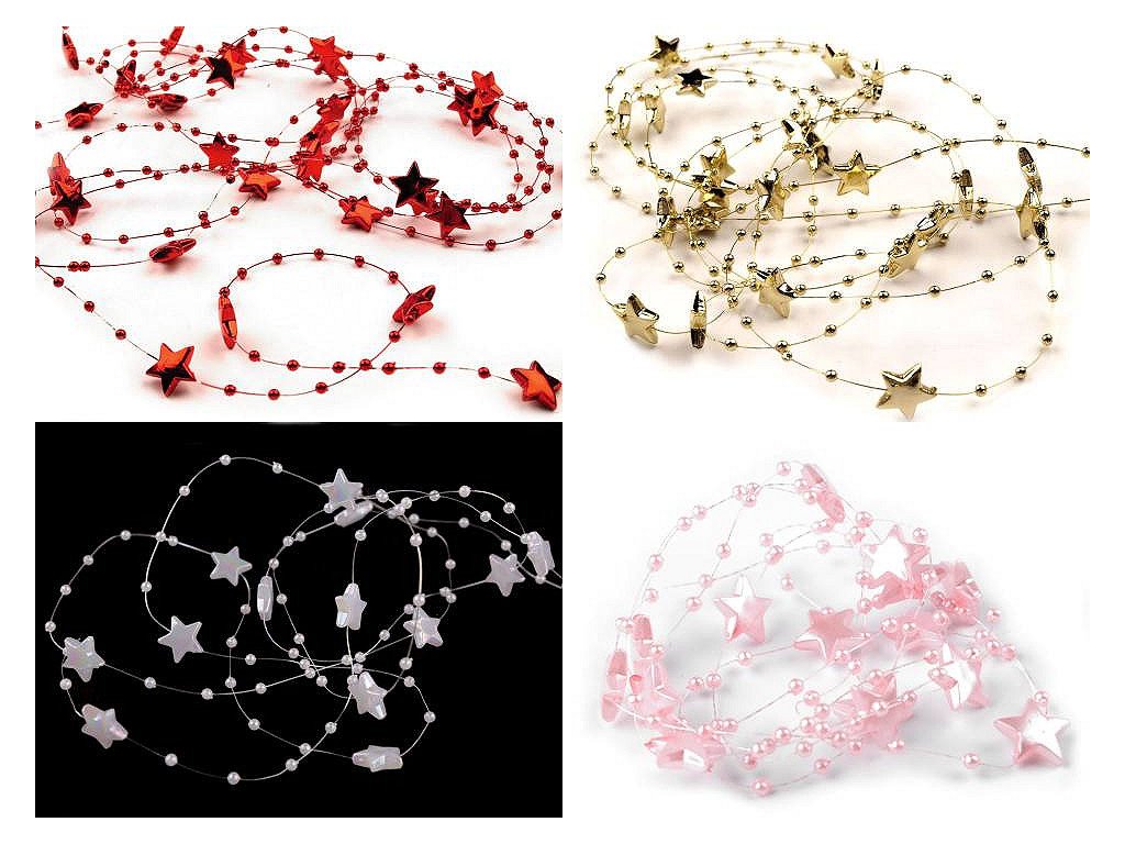 Dekorační perličky s hvězdičkami na silonu využijete jako ozdobný řetěz na věnce, kytice, slavnostní tabule, atd.
