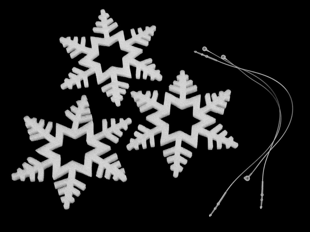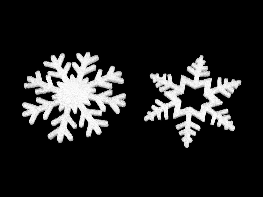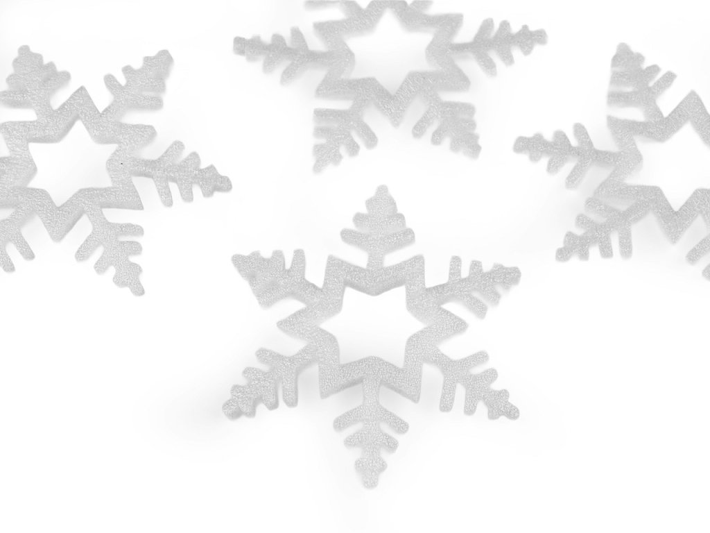 Pěnové vločky můžete pověsit jako dekoraci do oken, výloh obchodů a restaurací, ale také se dají lepit. Součástí balení jsou plastové splinty.