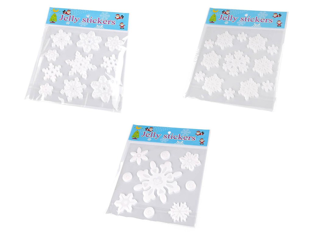 Dekorační gelové vločky využijete na ozdobení oken, zrcadel či různých skel během zimního období. Neobsahují lepidlo, jednoduše přilnou na rovný hladký povrch. Snadno se sloupnou, nezanechávají stopy, dají se přemístit a znovu použít.