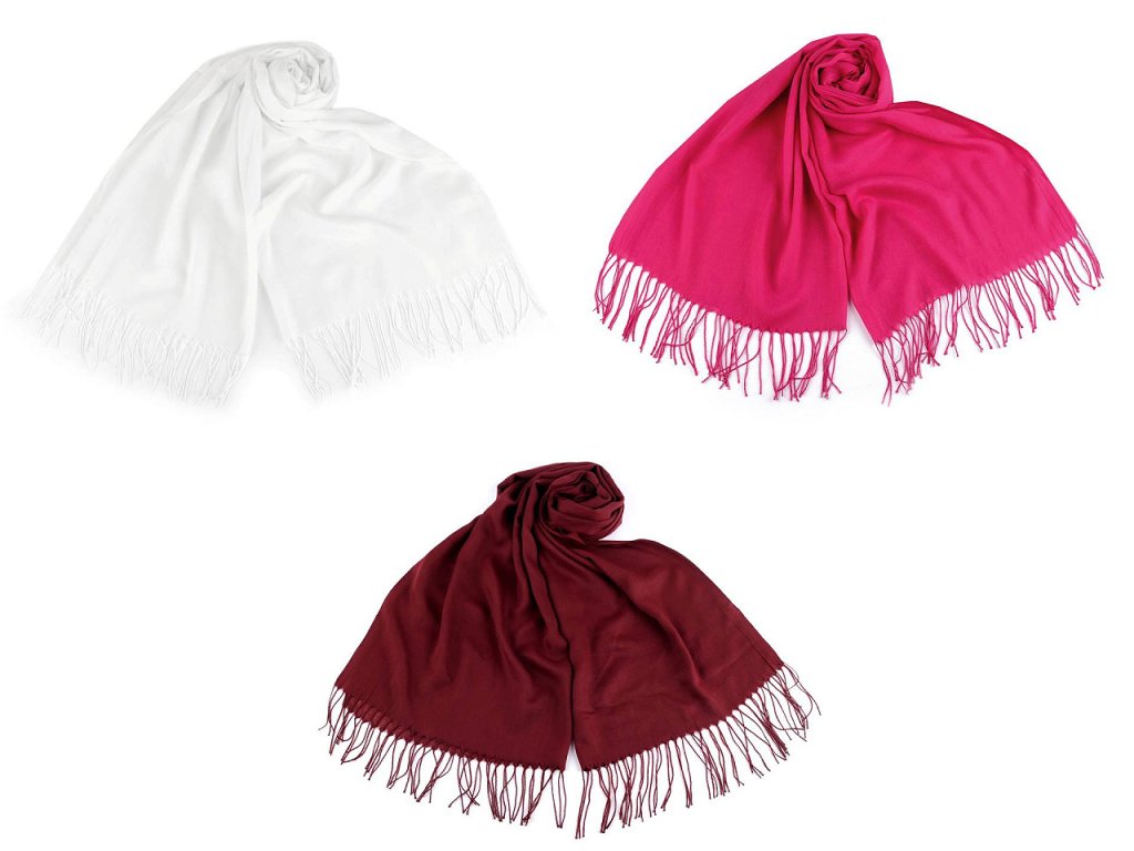 Letní šátek / šála s třásněmi jednobarevný 70x175 cm