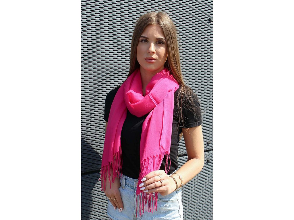 Jednobarevný šátek je vzdušný a lehký, velice příjemný na dotek. Bude elegantním doplňkem pro každou příležitost. Je jemně průsvitný, na koncích má třásně. Doladí váš outfit, ať už si vezmete sako, halenku, svetřík či šaty.