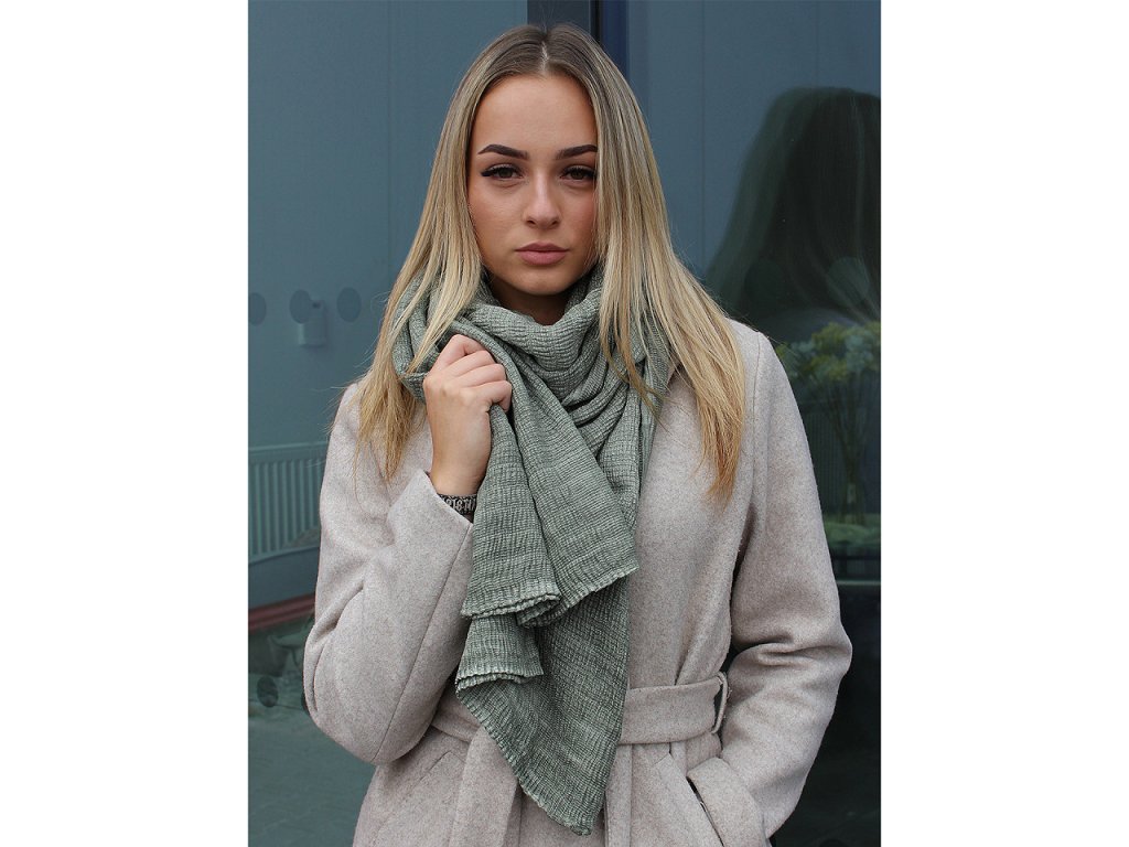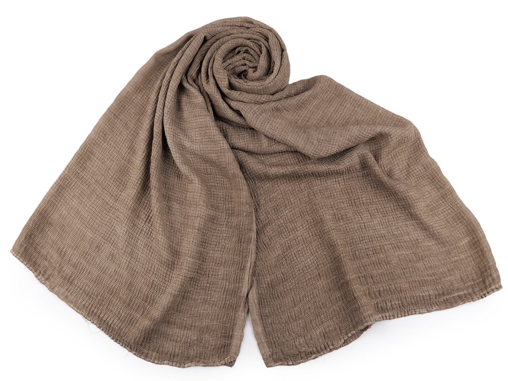 Mačkaný šátek je výjimečný svou vrapovanou strukturou. Je vyrobený z kvalitní kombinace bavlny a polyesteru. Tento typ dezénu se skvěle kombinuje s vaším celkovým outfitem. Je lehký a prodyšný, bude pohodlný v jakékoli situaci.