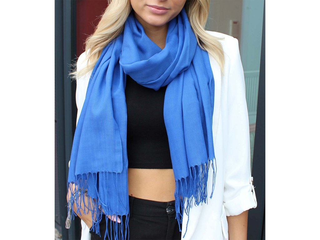 Jednobarevná oboustranná šála nadchne příznivce jednoduchého stylu oblékání. Materiál je jemný, velice příjemný na dotek. Hodí se jako letní doplněk, ochrání vás před sluncem, v chladných večerech vám příjemně zahalí ramena. Na koncích je zakončená třásněmi dlouhými 10 cm.