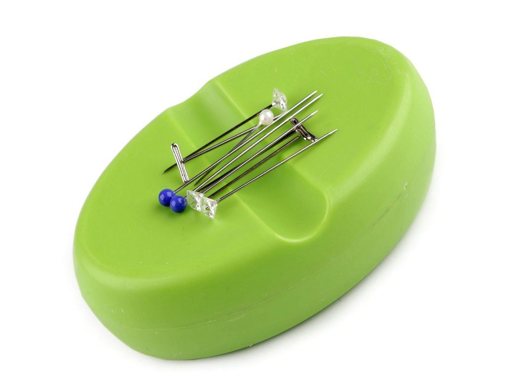 Oválnou magnetickou podložku využijete na jehly či špendlíky. Při šití se vám nepoztrácí po zemi a po stole. Díky prohlubni uprostřed se vám bude se špendlíky a jehlami dobře manipulovat.