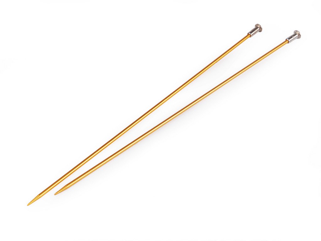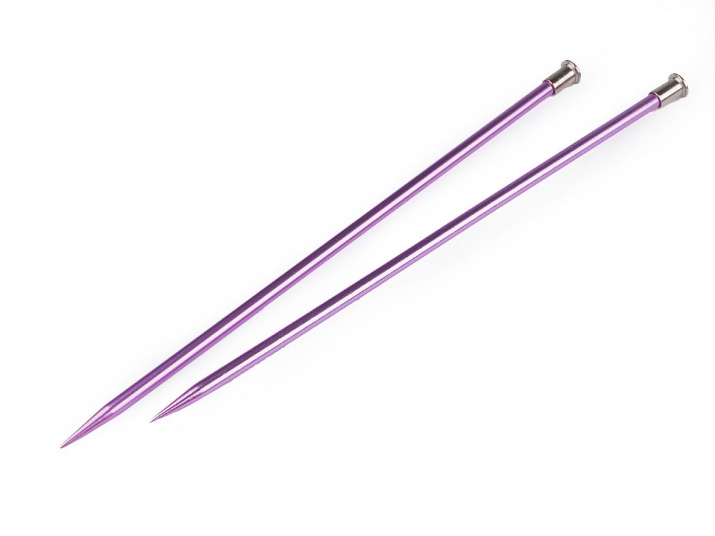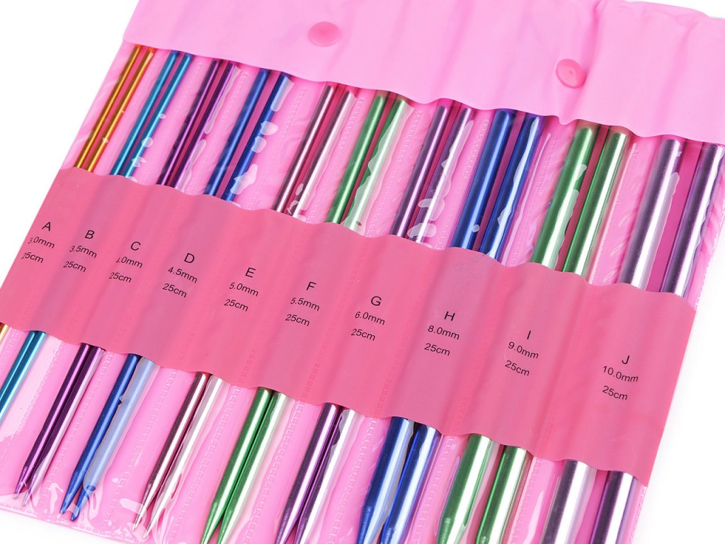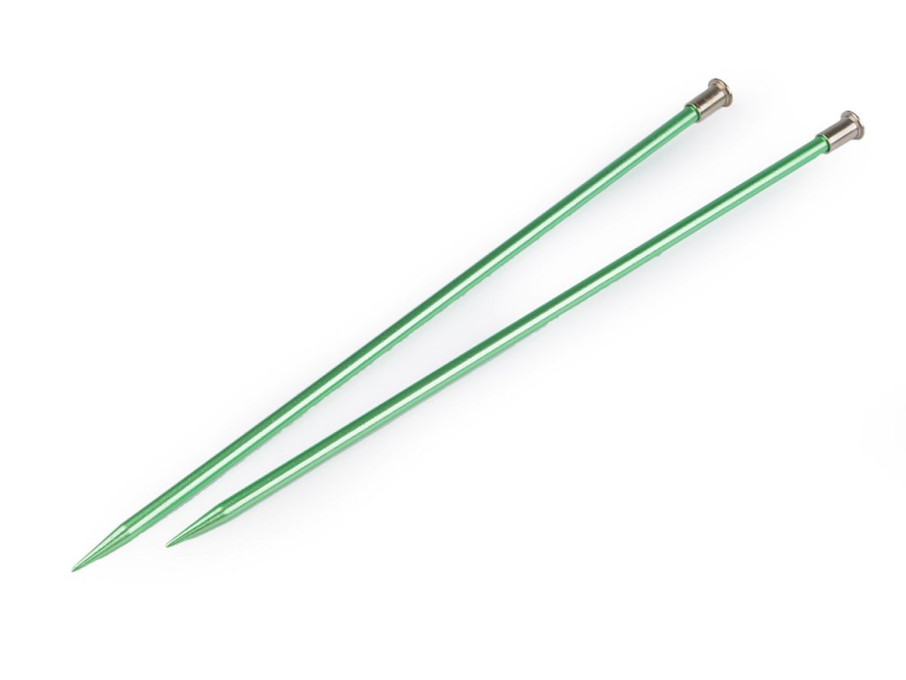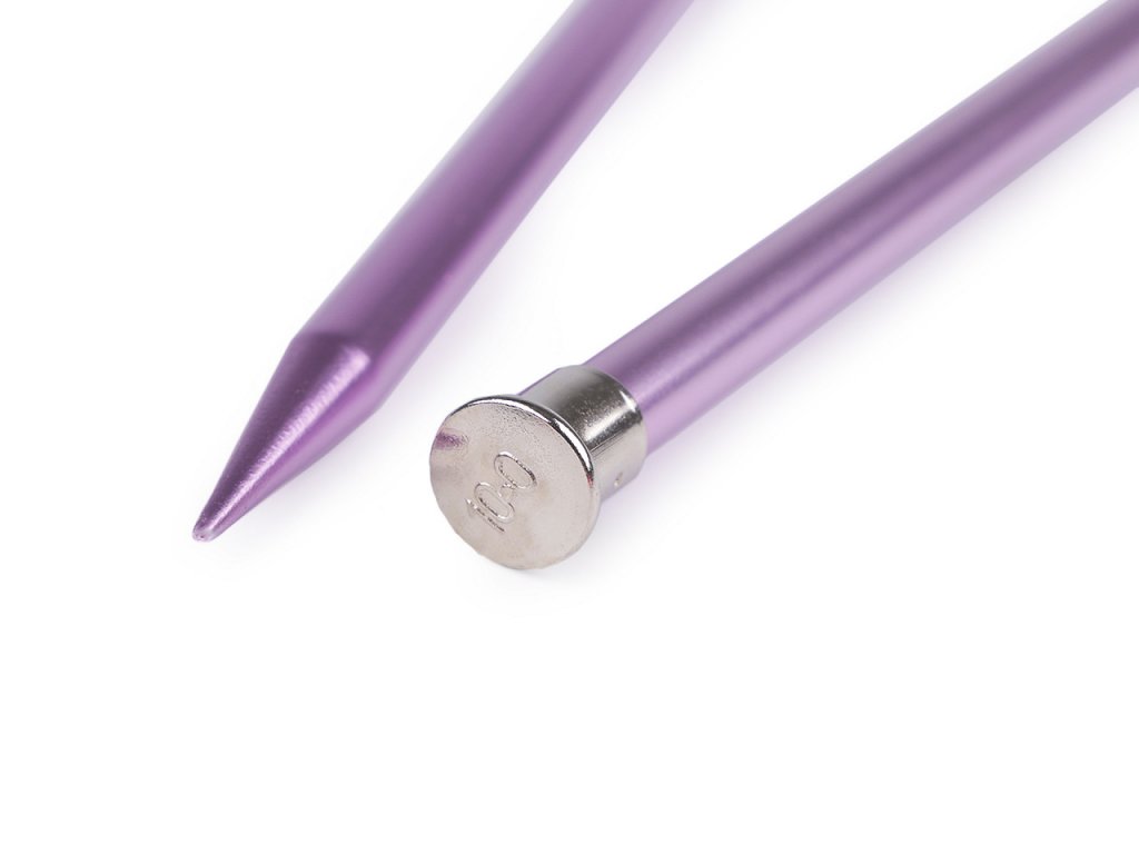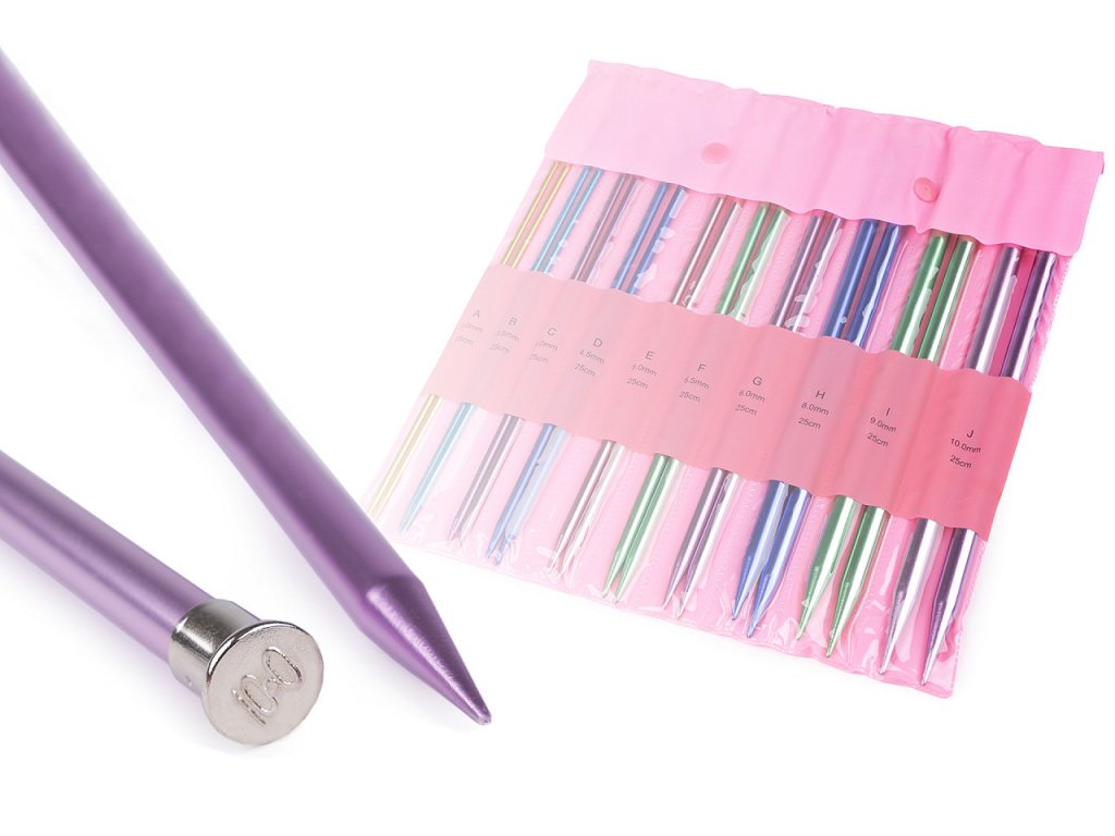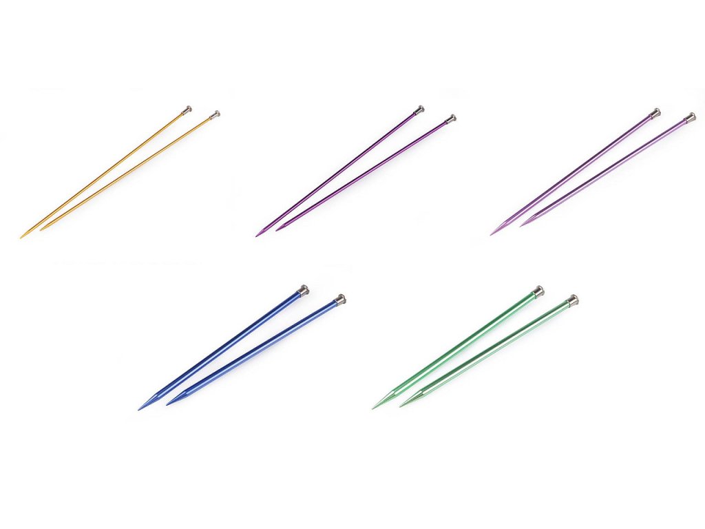 Rovné pletací jehlice jsou lehké a mají [lehce] prodlouženou špičku na pohodlné pletení. [Dobře se drží v ruce. Velikost průměru je barevně odlišena. Po jejich hladkém povrchu se snadno posouvá příze.]
