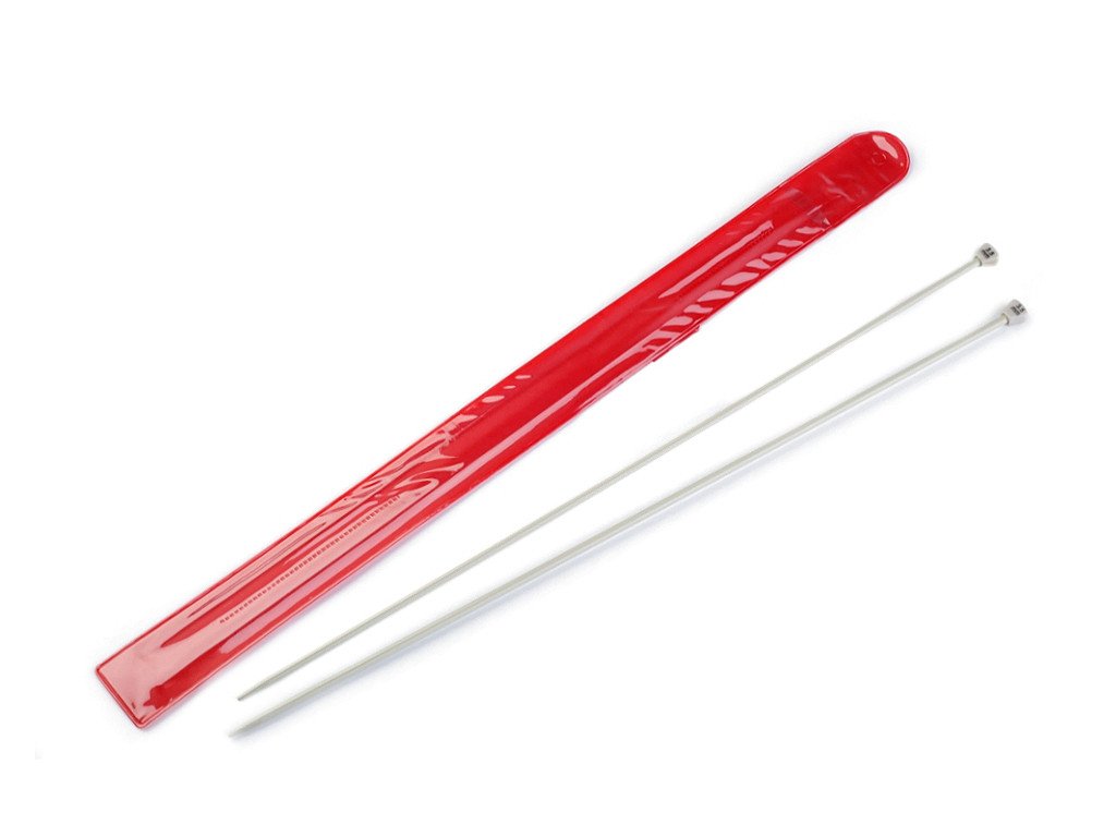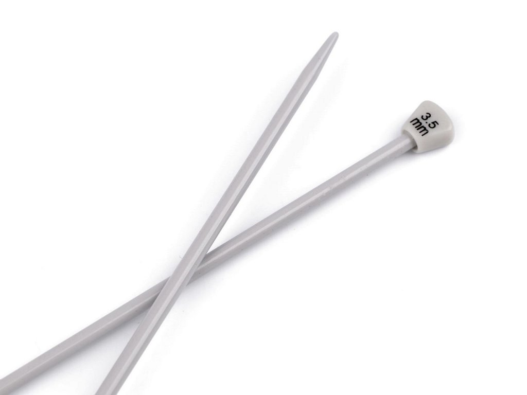 Rovné pletací jehlice [jsou lehké, vhodné pro jemnější příze a drobnější výrobky. Dobře se drží v ruce. Po jejich hladkém povrchu se snadno posouvá příze.]