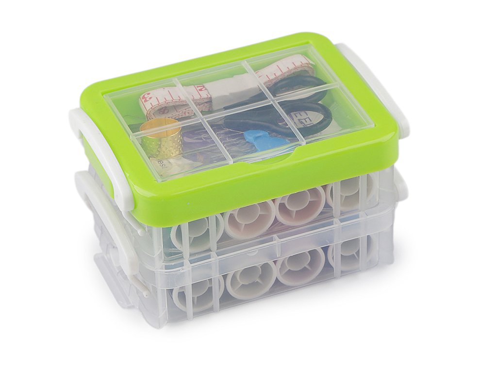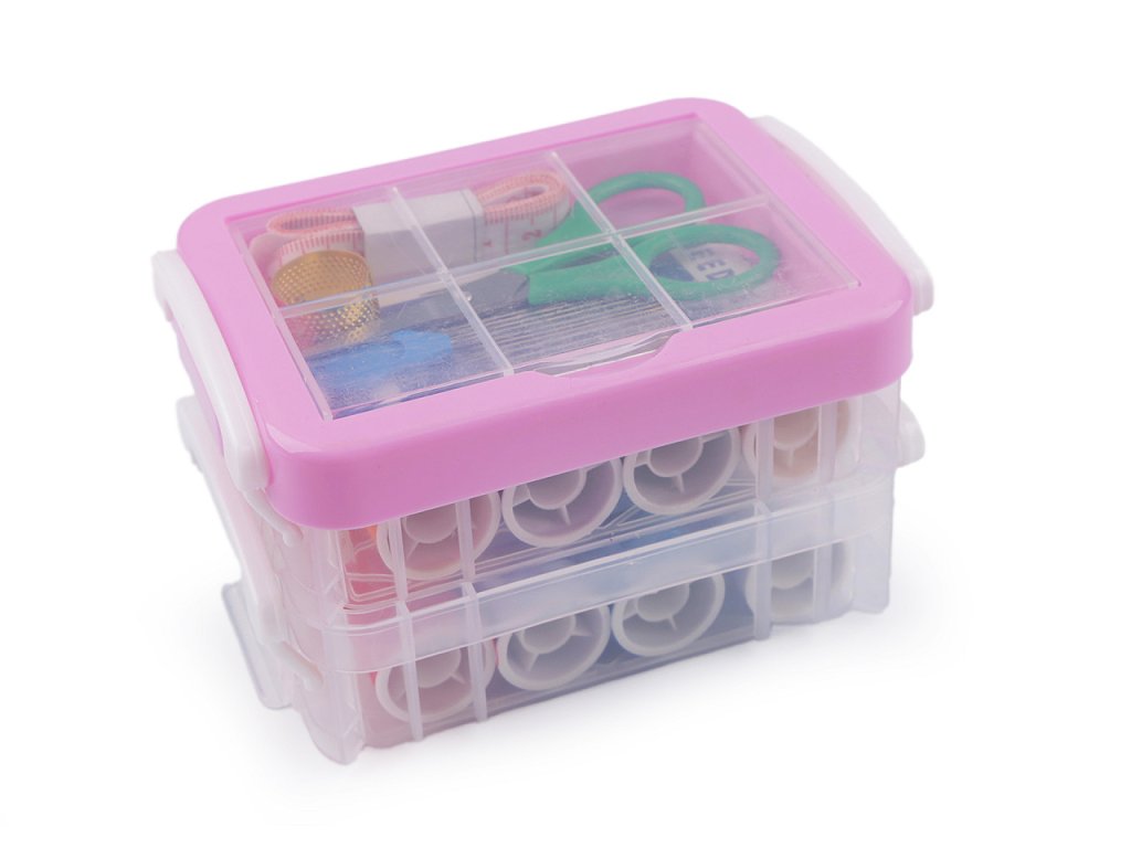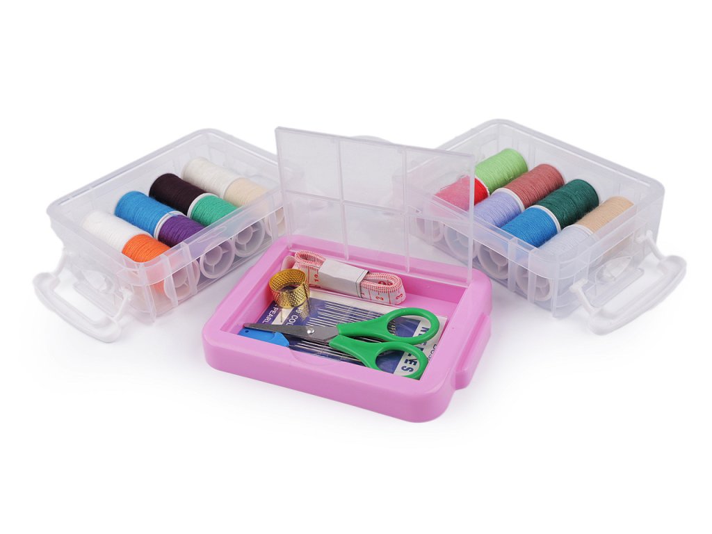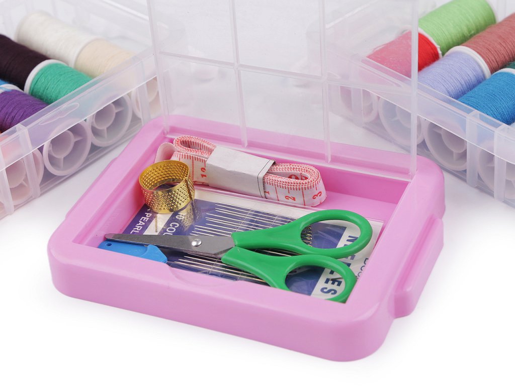 Sada na šití v praktickém plastovém boxu obsahuje všechny základní věci, které potřebujete k šití nebo opravení vašeho oblečení. Box je dvoupatrový.