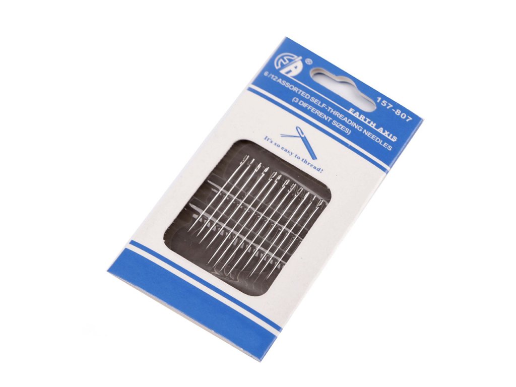 Tyto jehly jsou vyrobeny jinou technologií než klasické jehly a kdo je poprvé použije, už jiné nechce. Mají speciálně tvarované ouško, nit navlékáme jednoduchým nasunutím ze strany ouška, malá pojistka zajistí, že ani při provlékání hustou tkaninou nit z jehly nevyklouzne.