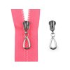 Kovový jezdec je určený ke kostěným zipům, které u nás najdete pod kódem 900943. Díky své velikosti je vhodný na dětské oděvy a doplňky.
