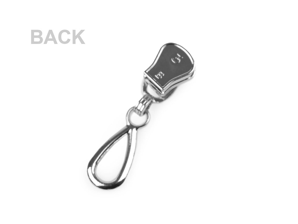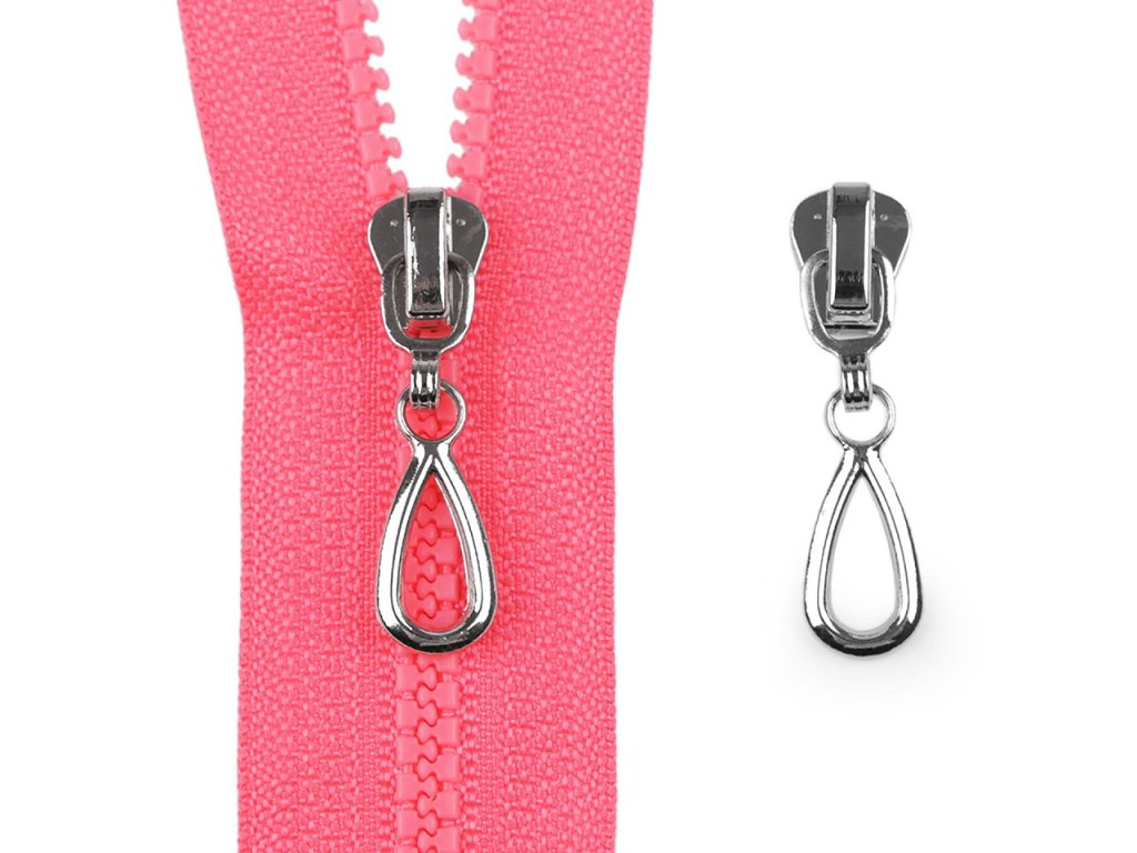 Kovový jezdec je určený ke kostěným zipům, které u nás najdete pod kódem 900943. Díky své velikosti je vhodný na dětské oděvy a doplňky.