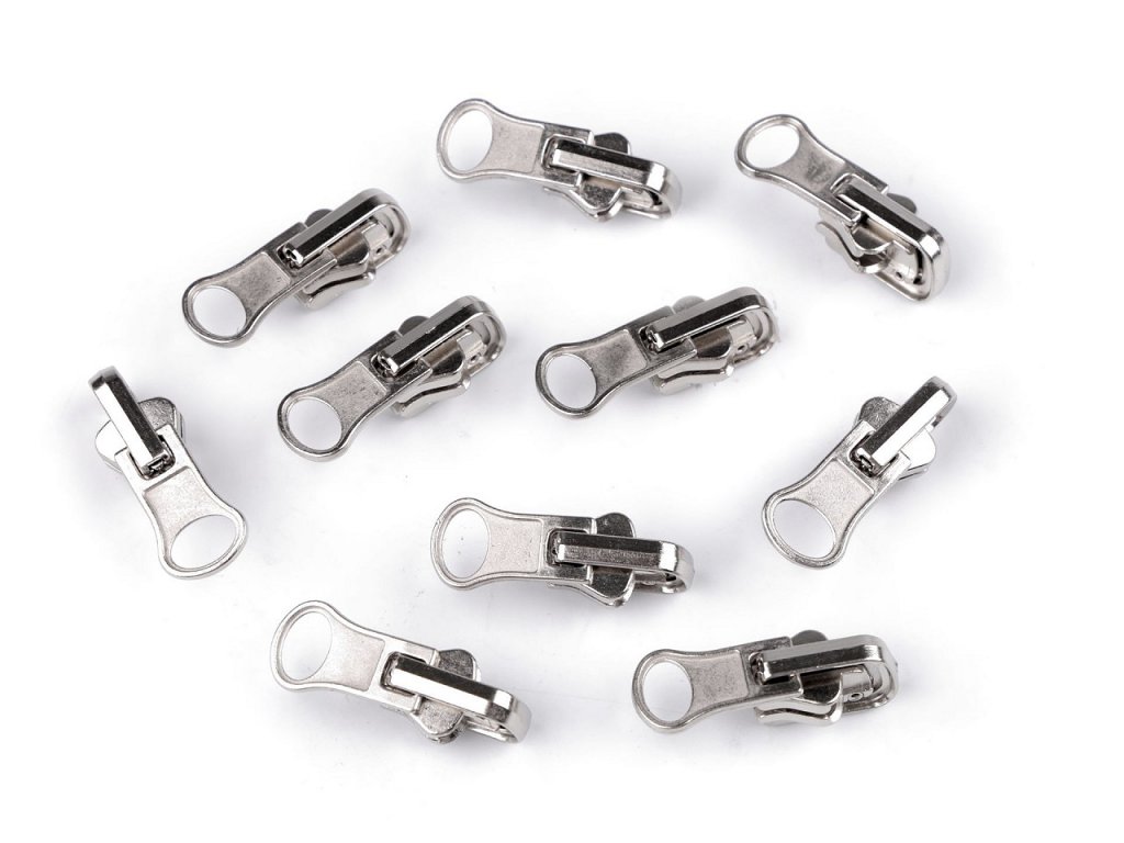 Kovový oboustranný jezdec s překlápěcím poutkem je určený ke kostěným zipům s šířkou 5 mm, které najdete [pod kódem 090847]. Jezdce jsou s aretací, což znamená, že zdrhovadlo zůstává rozevřené pouze tolik, kolik si přejete. Využijete je do oboustranných bund, vest, mikin apod.