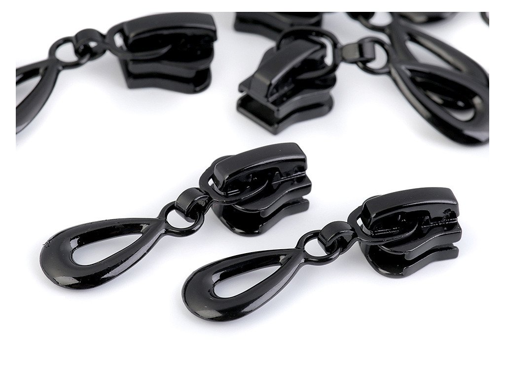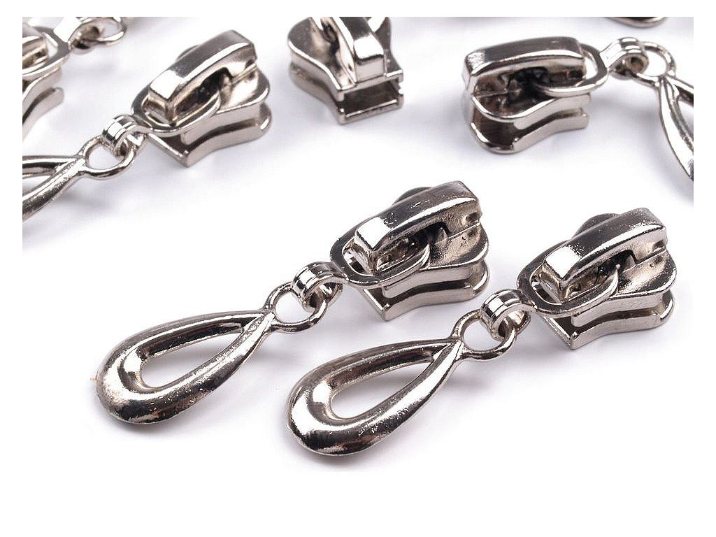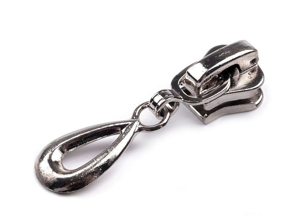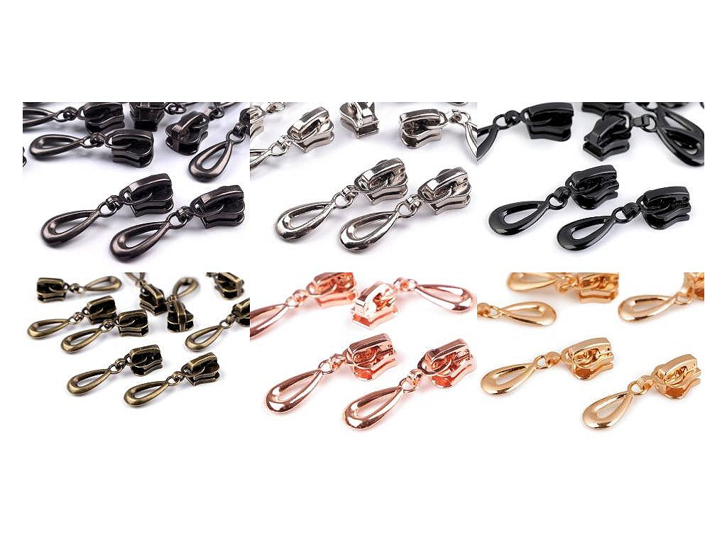 Kovový jezdec ke kostěným zipům s ozdobným táhlem. Samostatné jezdce potřebujete, pokud pracujete se zipy v metráži, a sami si tak určujete délku zipu. Tento jezdec je s aretací, což znamená, že zdrhovadlo zůstává rozevřené pouze tolik, kolik si přejete. V nabídce několik pokovů. Metráže kostěných zipů najdete v našem eshopu [pod kódem 090847.]