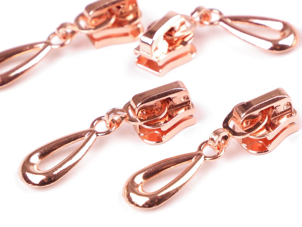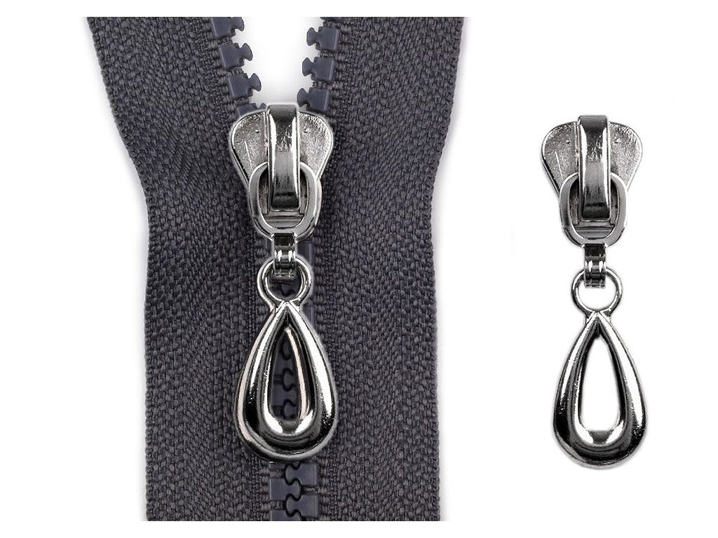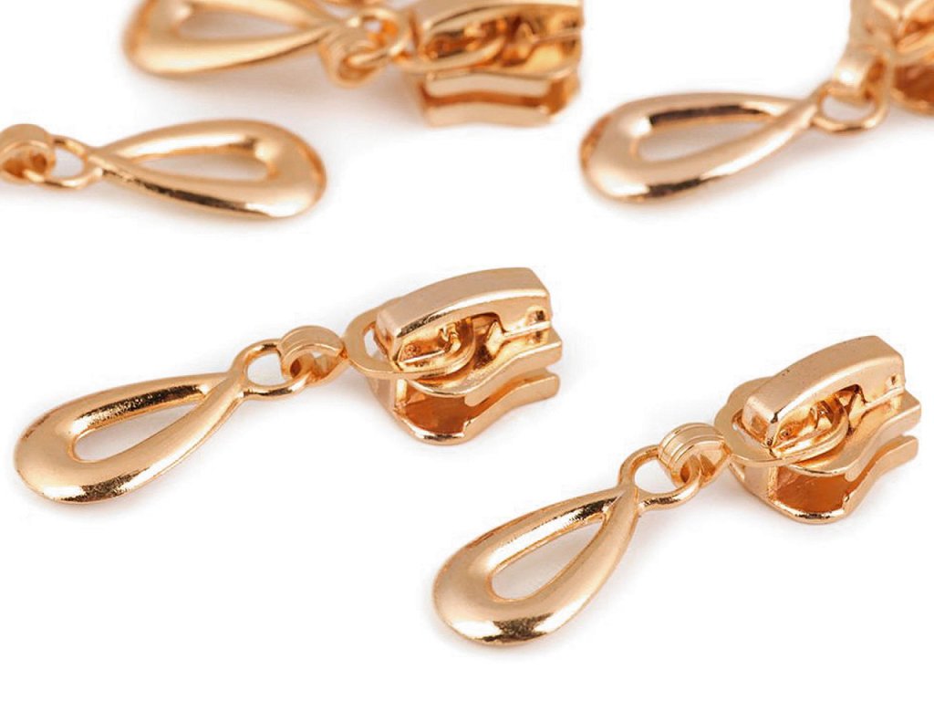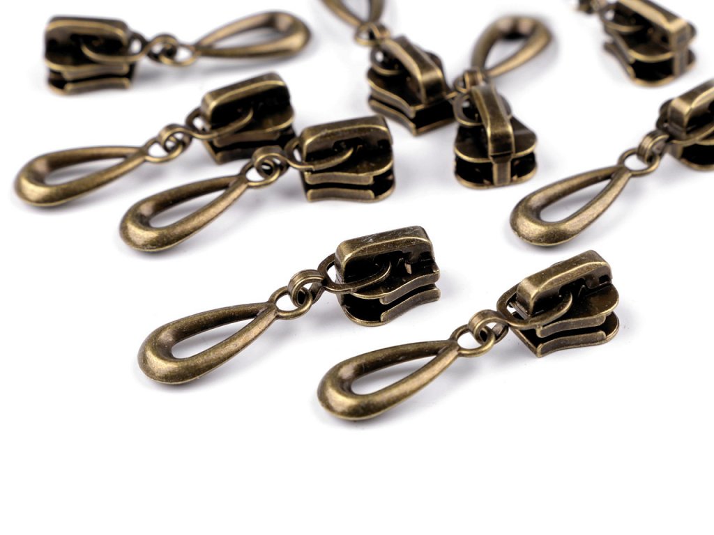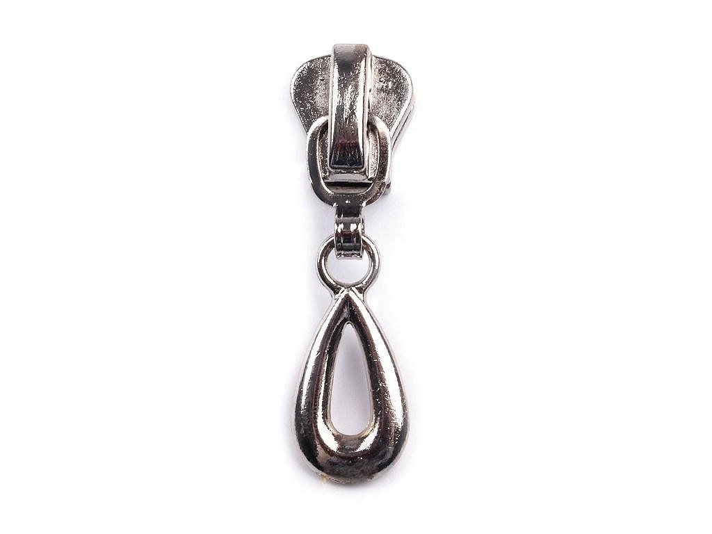 Kovový jezdec ke kostěným zipům s ozdobným táhlem. Samostatné jezdce potřebujete, pokud pracujete se zipy v metráži, a sami si tak určujete délku zipu. Tento jezdec je s aretací, což znamená, že zdrhovadlo zůstává rozevřené pouze tolik, kolik si přejete. V nabídce několik pokovů. Metráže kostěných zipů najdete v našem eshopu [pod kódem 090847.]