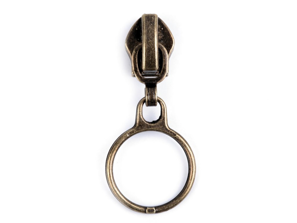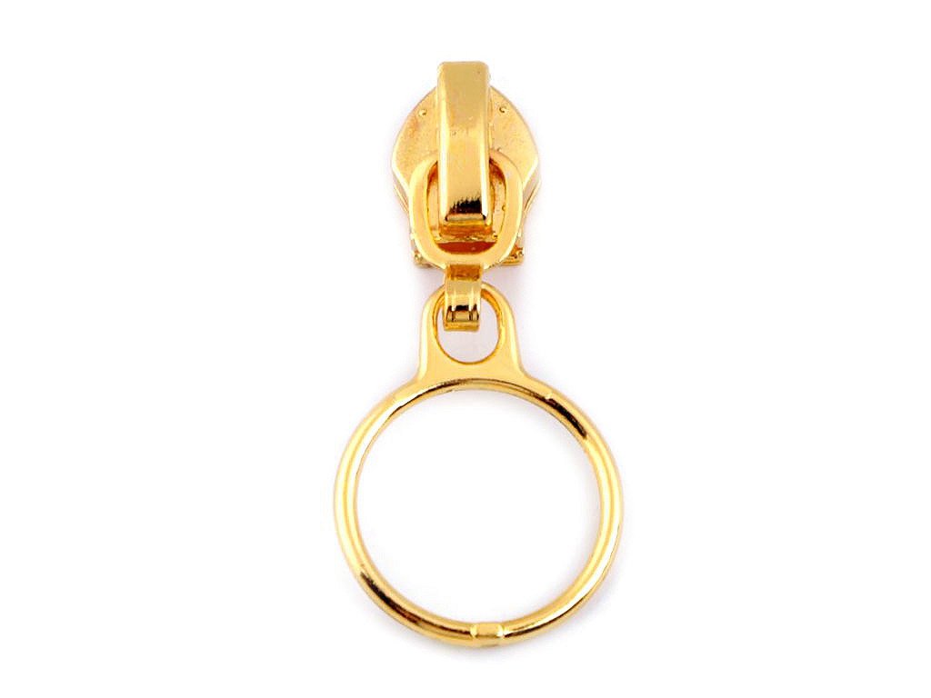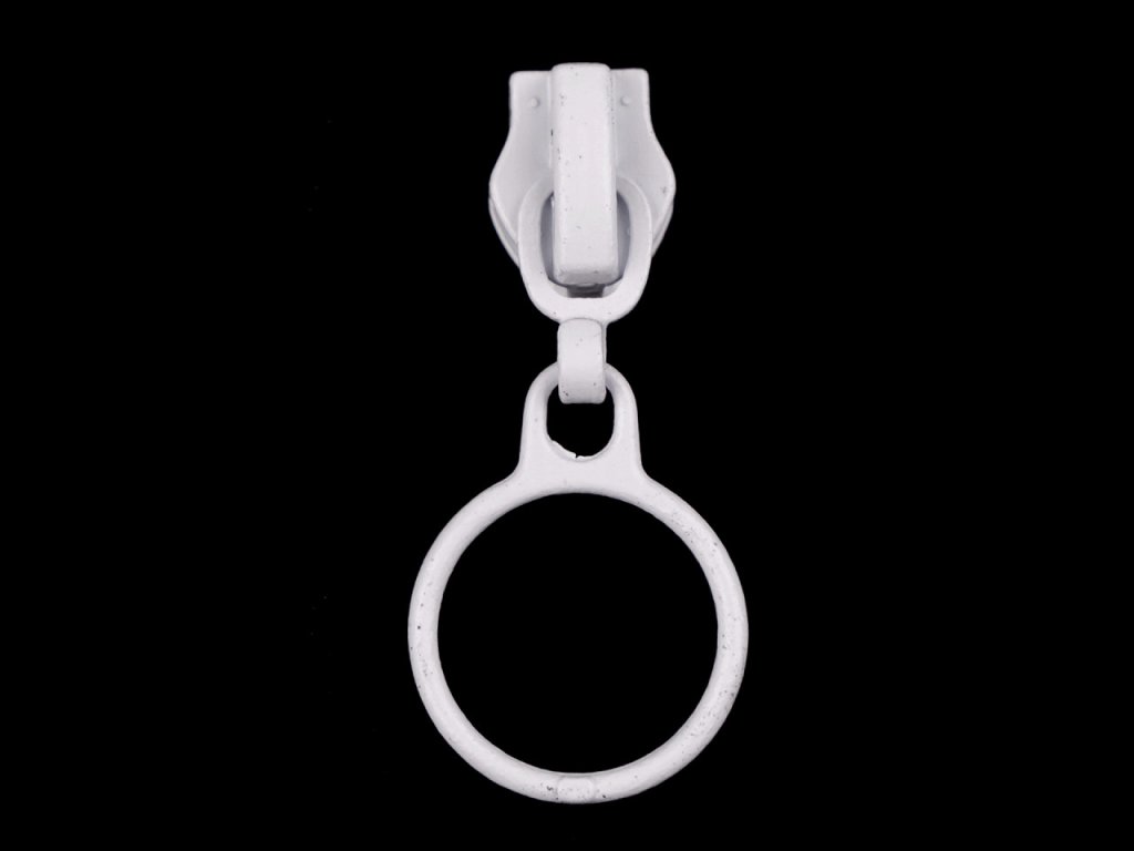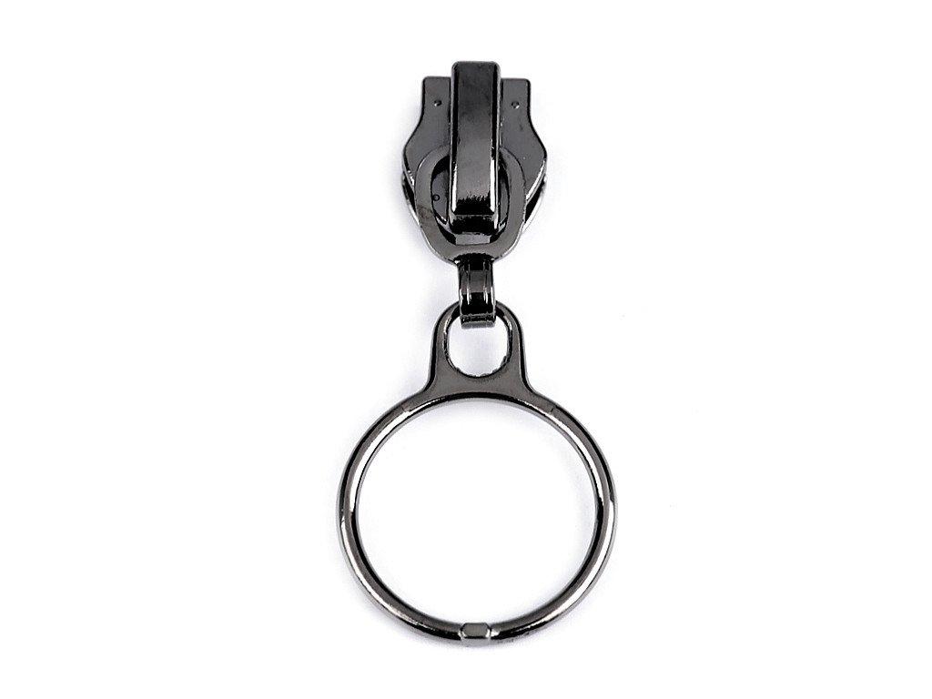 Kovový jezdec s táhlem v podobě kroužku je určený ke spirálovým zipům v metráži, které u nás najdete pod kódem 790304, 800963, 750994, 750503, 790305.