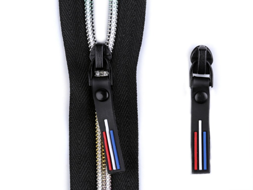 Kovový jezdec se silikonovým taháčkem je určený ke spirálovým zipům o šíři 6 mm v metráži, které u nás najdete pod kódy 750503, 790304, 800963.