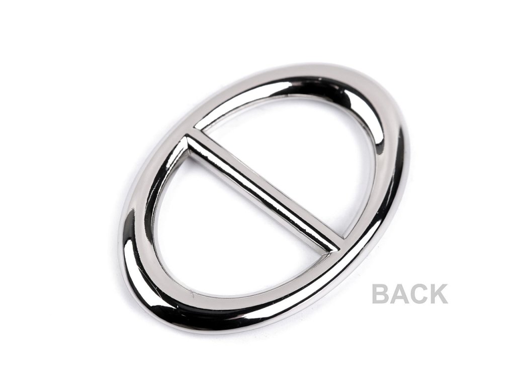 Kovová spona je osázená třpytivými broušenými kamínky, díky kterým působí elegantně. Vynikne jako ozdoba plesových a večerních šatů nebo doplňků (psaníček, kabelek apod.). Je vhodná na výrobu tenkých pásků.