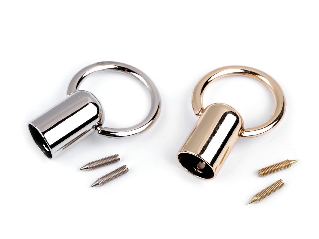 Koncovku s kroužkem využijete na připevnění uch ke kabelkám či taškám. Přilepíte do ní konec šňůry, který následně zafixujete pomocí přiložených šroubků.