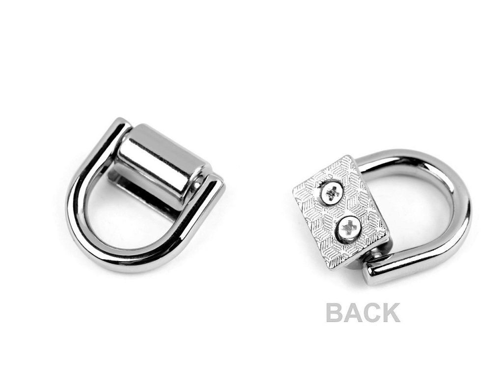 Kovový průvlek je vhodný na menší kabelky a psaníčka. Připevňuje se pomocí kovové podložky a přiložených šroubků, následně k němu upevníte ucho, popruh či řetízek.