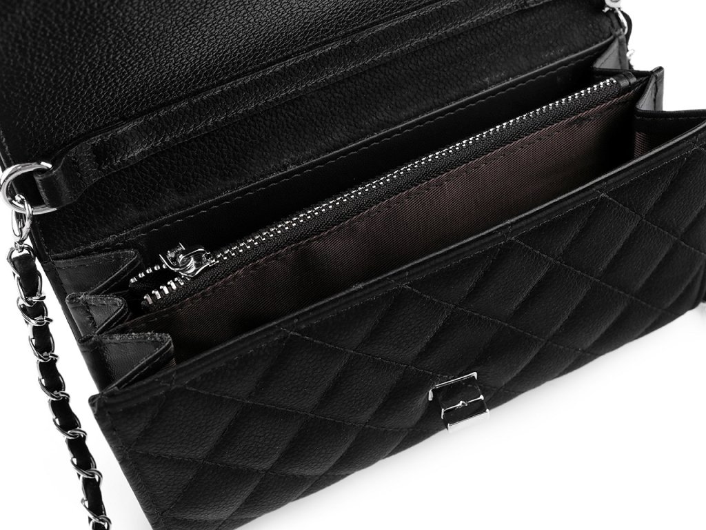 Módní kabelka / psaníčko se díky svému elegantnímu vzhledu stane skvělou společnicí nejen při společenských událostech, ale i při každodenním nošení. Díky syntetického materiálu, který vypadá jako kůže, má kabelka punc kvality i vkusné originality. Zajímavým detailem je ozdobné plastické štepování a odnímatelný popruh s řetízkem.