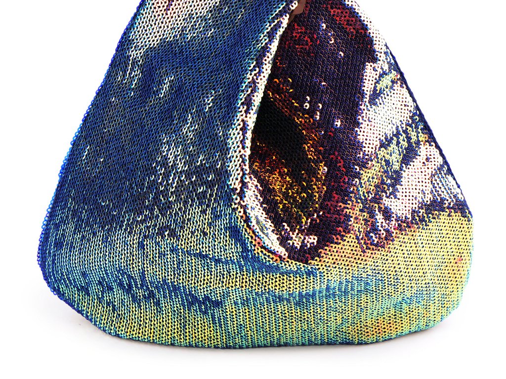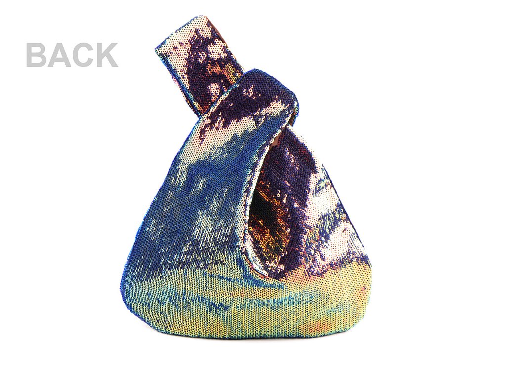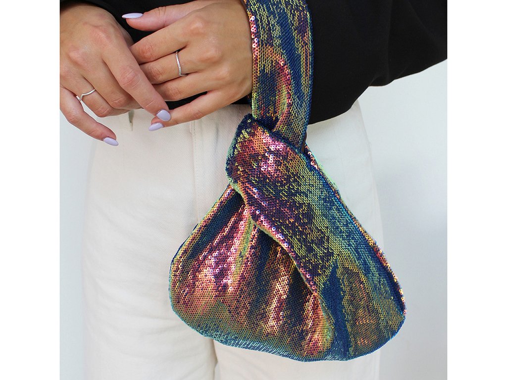 Flitrovou kabelkou oslníte na každé události, ať už jdete na party, festival, oslavu narozenin nebo jinam. Je celá posetá drobnými flitry, díky kterým je nepřehlédnutelná. Uzavírá se provléknutím delšího ucha kratším. Uvnitř má polyesterovou podšívku s malou kapsičkou na drobnosti. Nosí se v ruce.