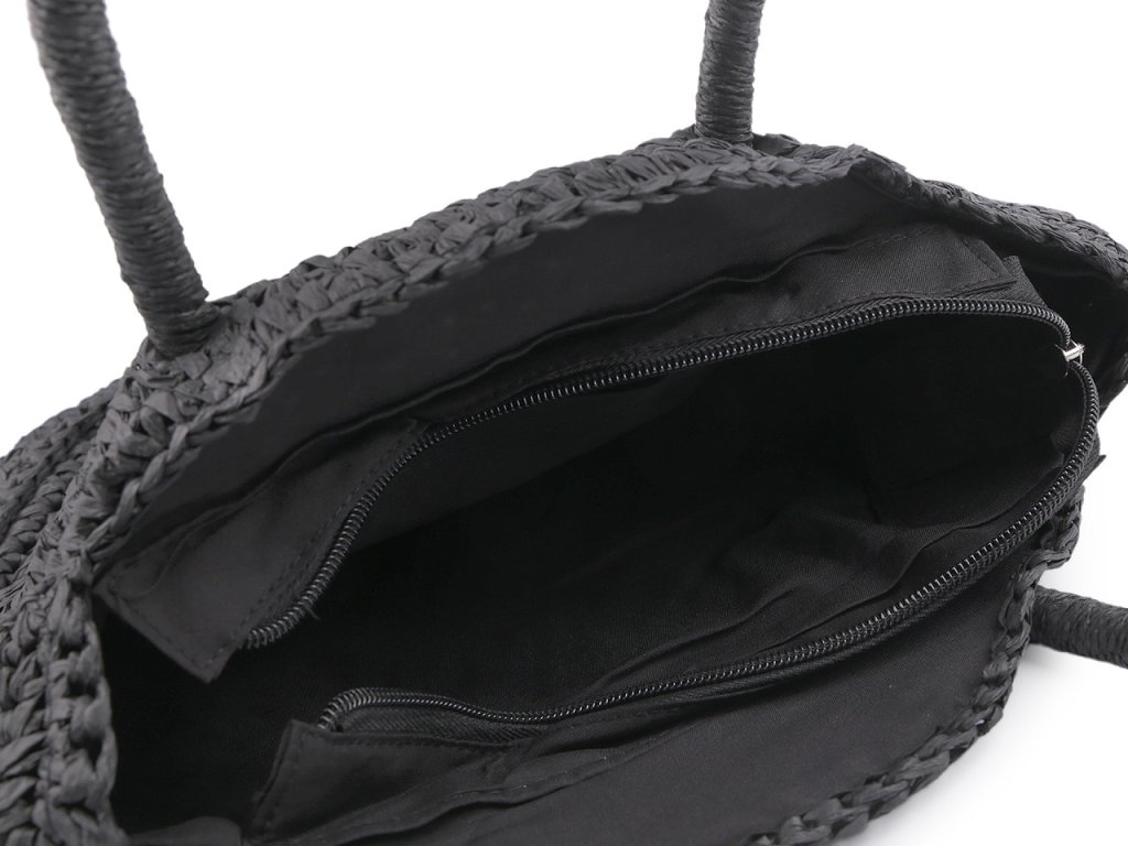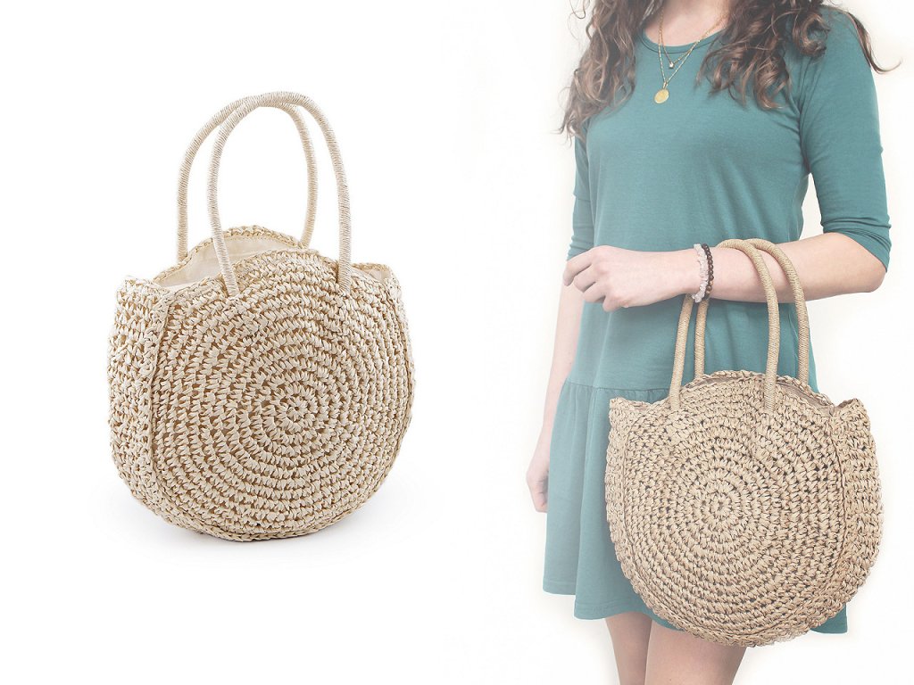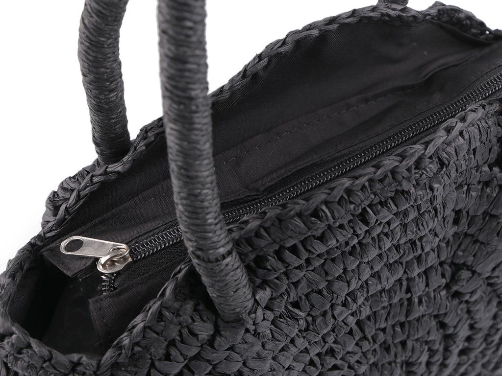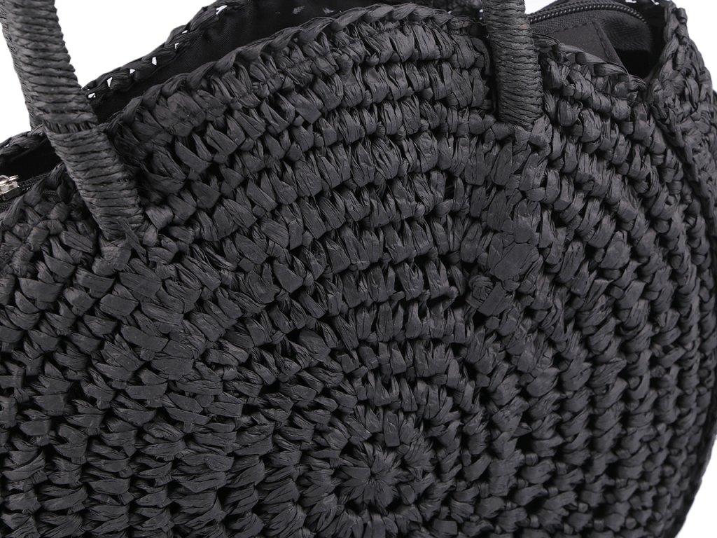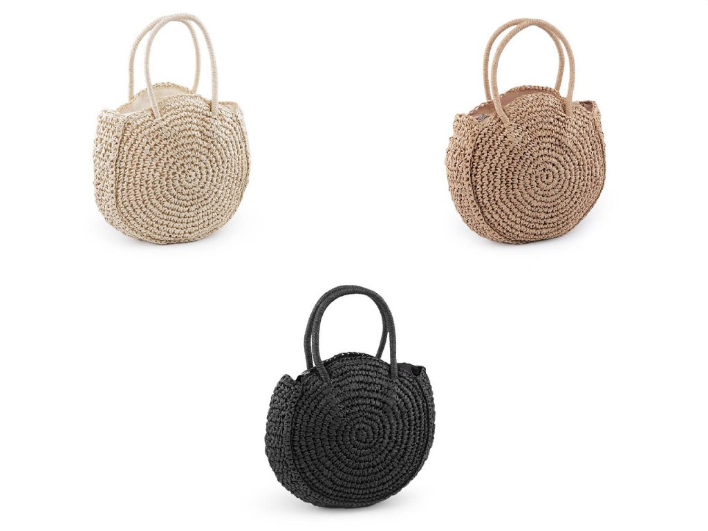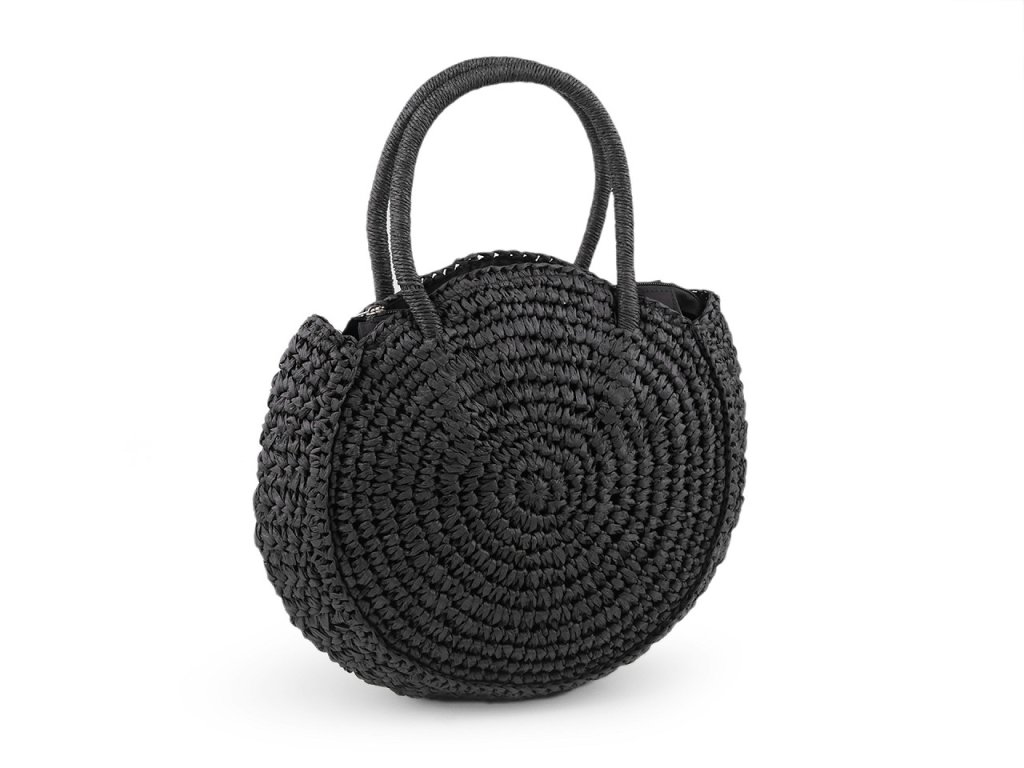Kulatá háčkovaná kabelka je zajímavým doplňkem v boho stylu. Je vyrobená z papírových provázků z palmy rafie, díky tomu je lehká jako peříčko. Bude krásným doplňkem vašeho letního nebo festivalového outfitu. Hodí se jako kabelka na běžné nošení nebo i na malý nákup. Má dvě ucha do ruky, zavírá se na zip. Uvnitř má malou kapsičku na drobnosti.
