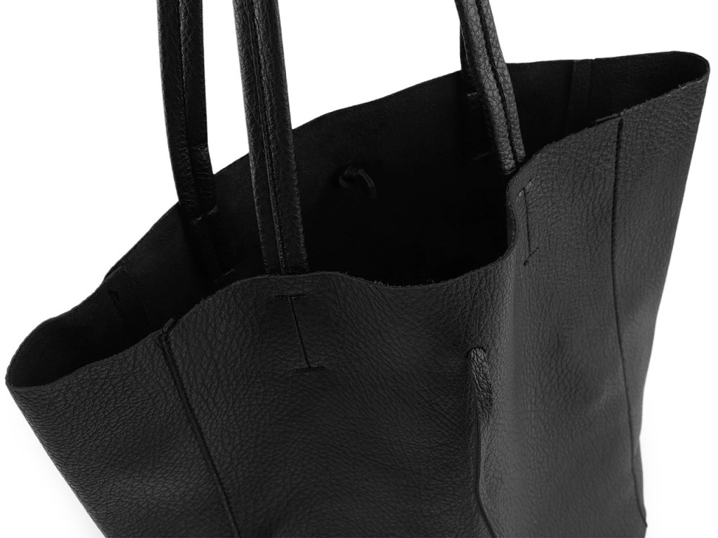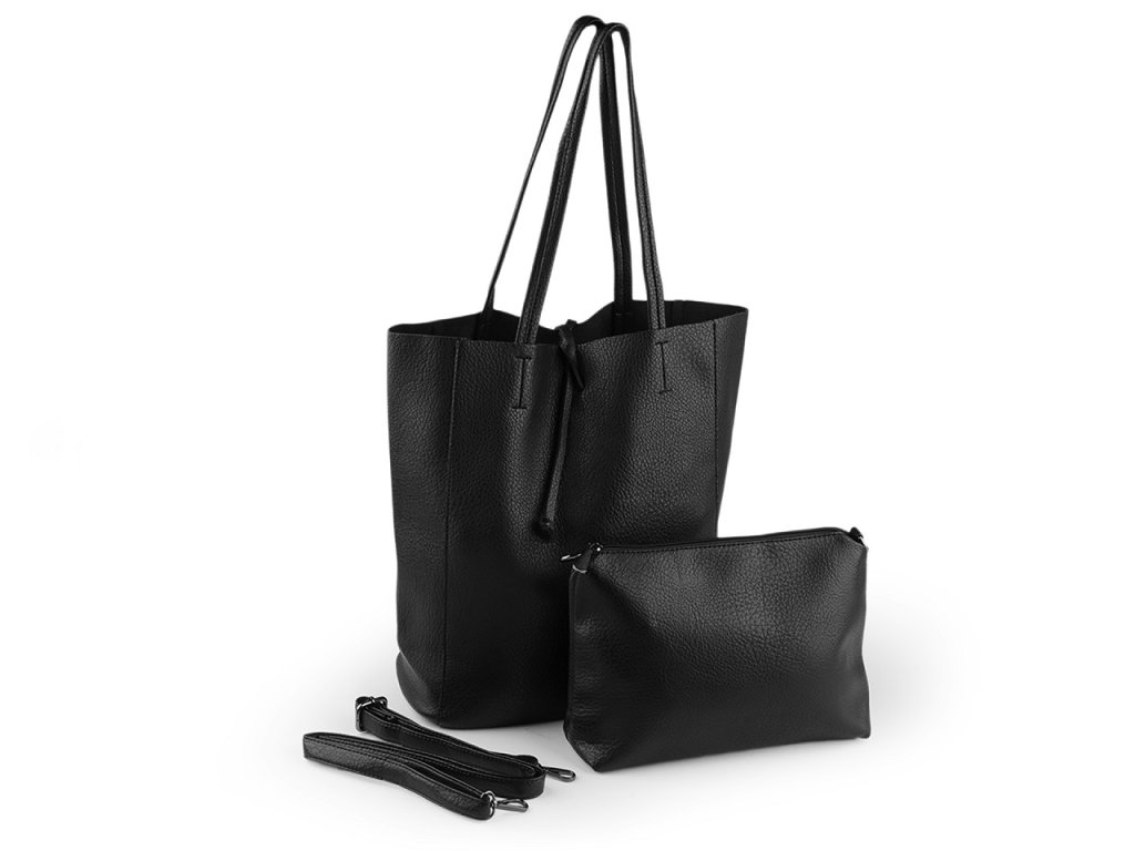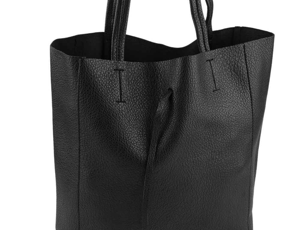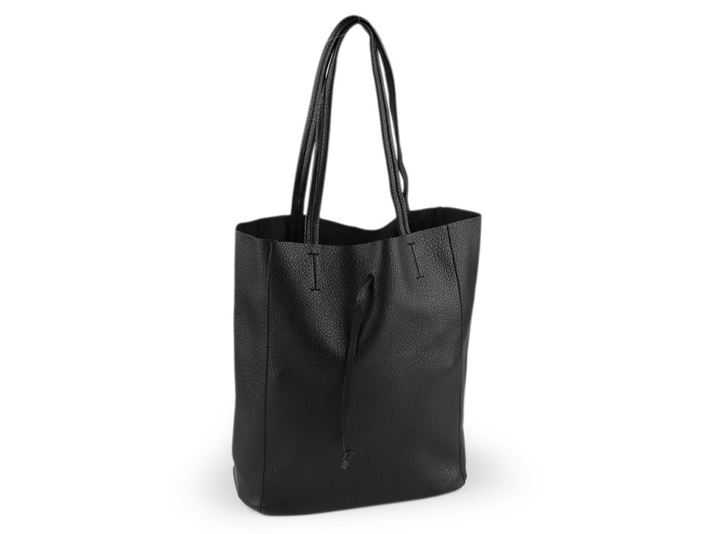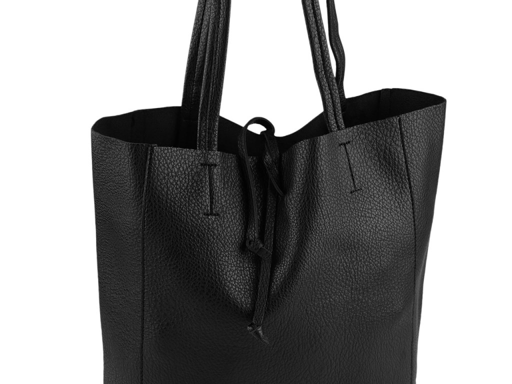 Velkou kabelku z eko kůže využijete do práce i na procházky po městě. Je ozdobená velkými průvleky a uchy v kombinaci s popruhem.