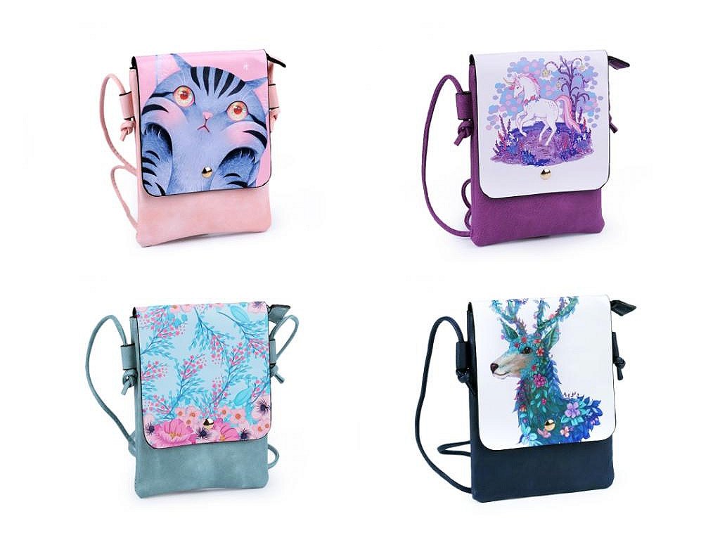 Kabelka malá kočka, květ, jednorožec, jelen, kůň 15,5x21 cm