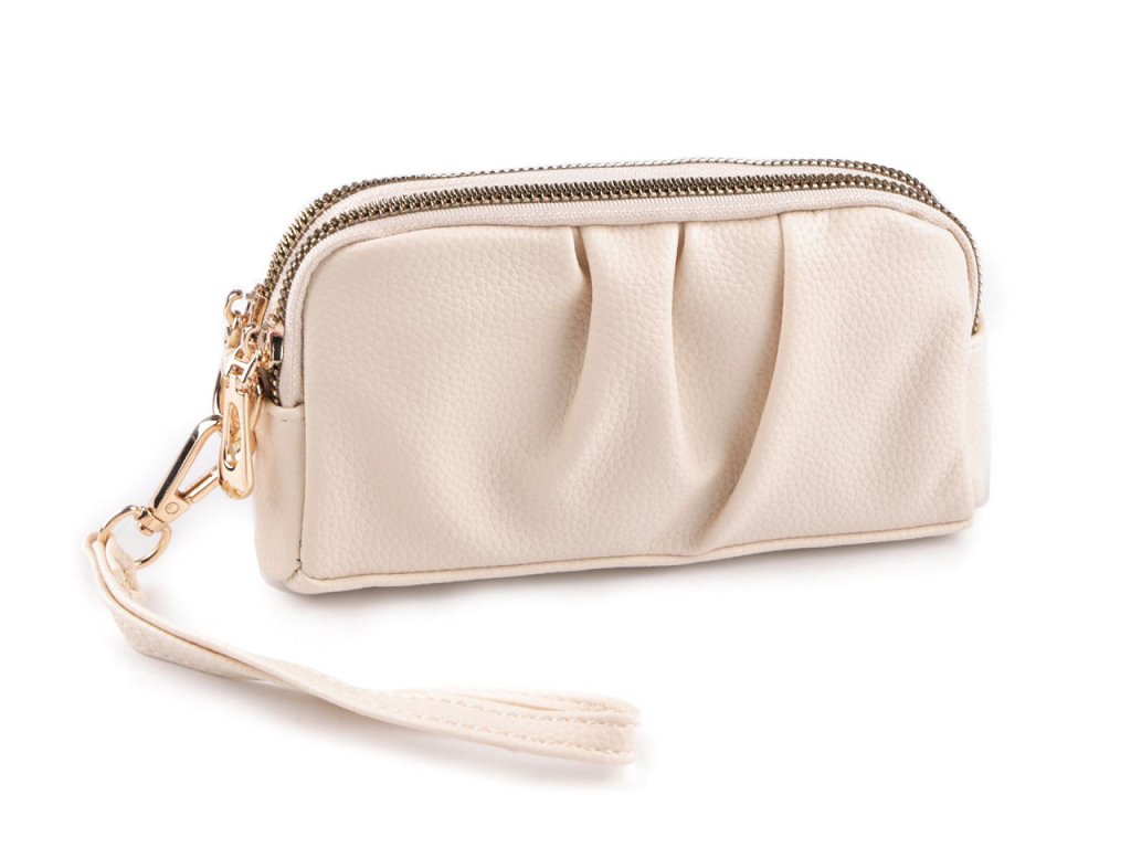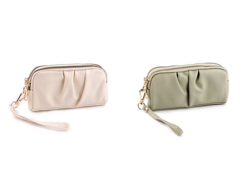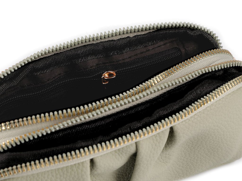 Je rozdělená na 2 části, které se zapínají na zip. Uvnitř má malou kapsičku na zip na uložení cenných věcí a 1 plochou přihrádku. Součástí kabelky je i odnímatelné poutko do ruky.