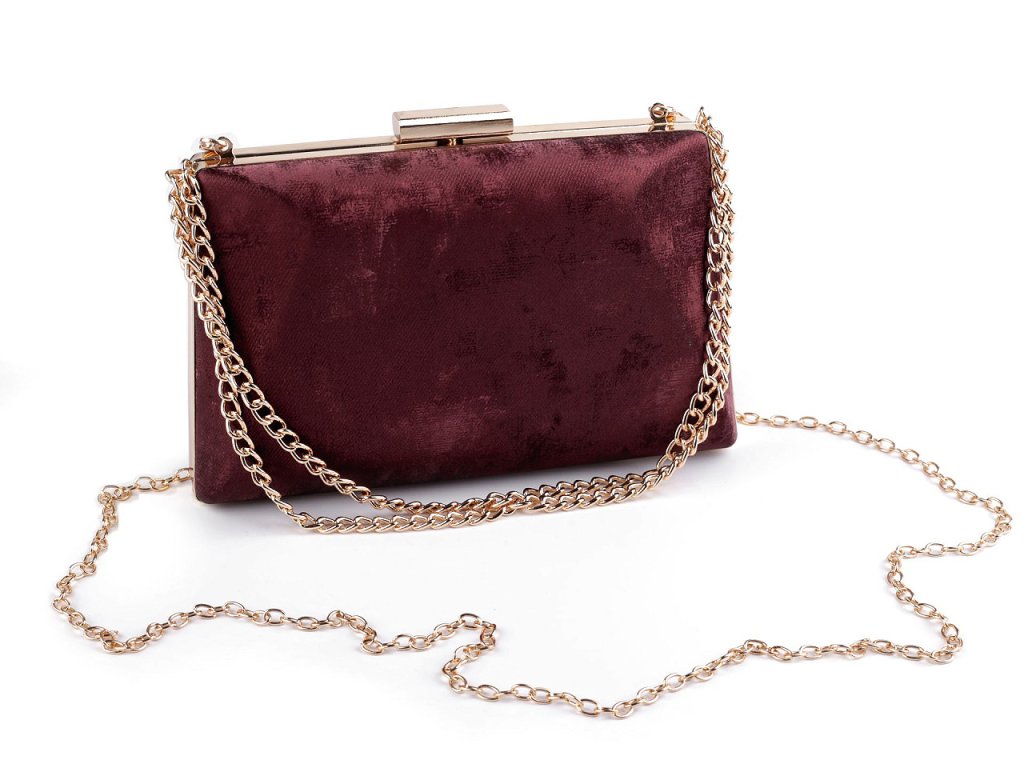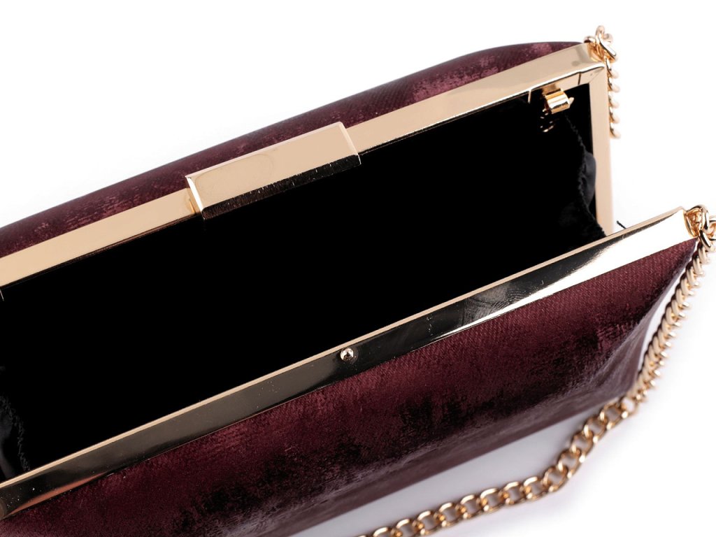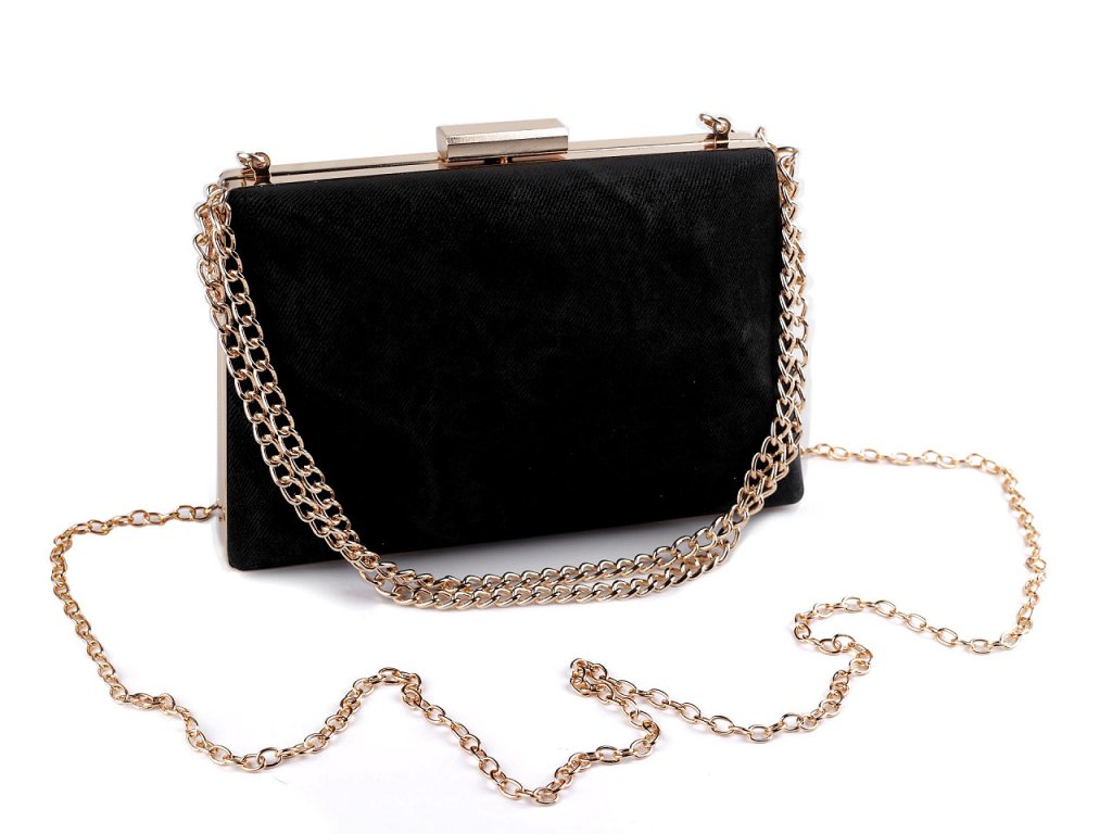 Luxusní společenská kabelka bude pravým doplňkem vašeho slavnostního outfitu. Její povrch má zajímavou semišovou strukturu. Zdobí ji ucha v podobě řetízků a lesklé kovové zapínání, po celém obvodu je kovový rámeček.