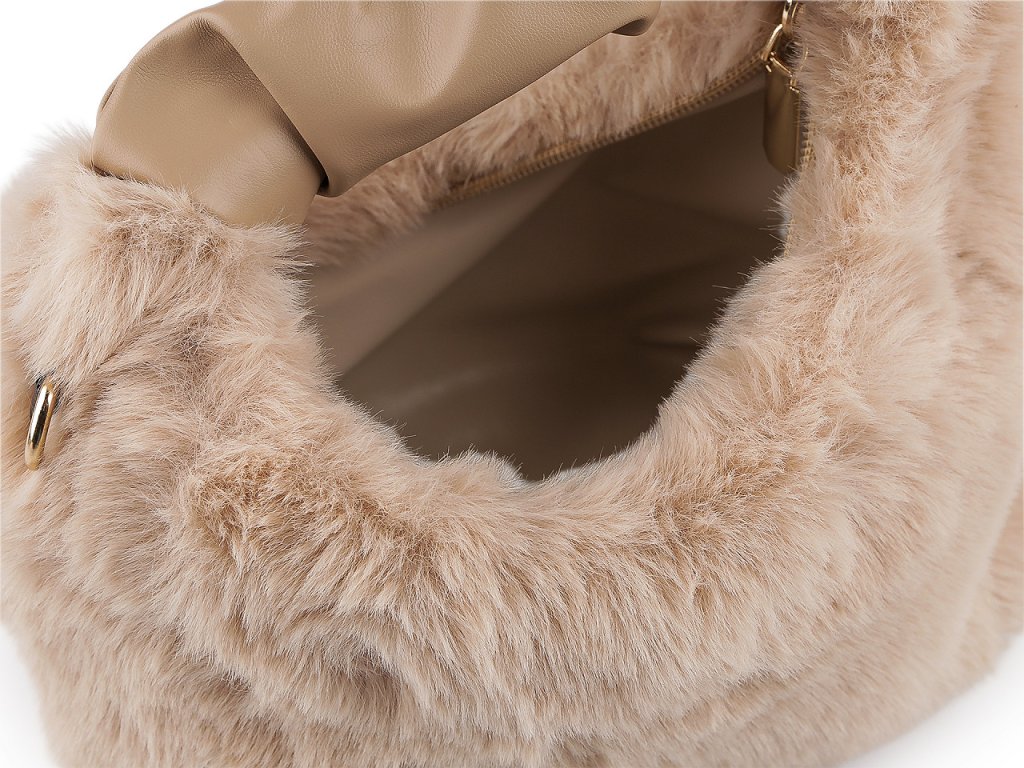 Kabelka z umělé kožešiny na první pohled okouzlí svým luxusním vzhledem a materiálem. Snadno ji sladíte s jakýmkoliv outfitem. Zavírá se na zip. Nahoře má ucho do ruky potažené měkkou koženkou. Součástí kabelky je i odnímatelný popruh na karabiny s plynulou regulací délky. Kabelku můžete nosit jako crossbody přes rameno či do kříže. Kombinace různých textur na kabelce vytváří elegantní a unikátní kousek, který je ideální pro každodenní používání i společenské příležitosti.