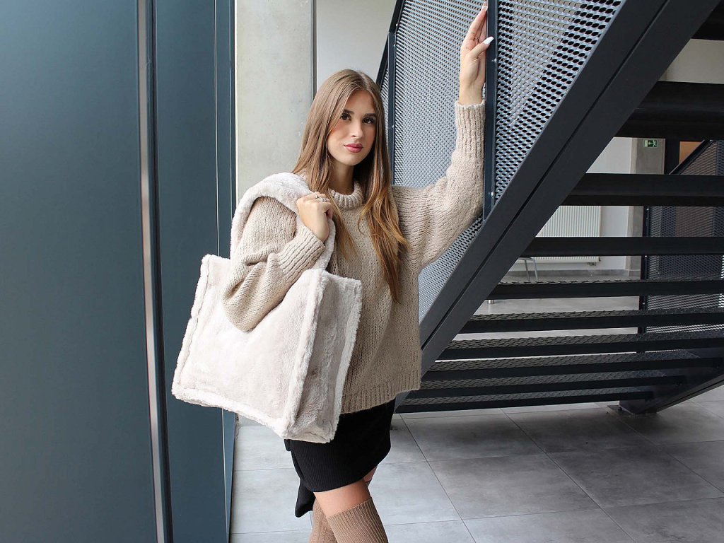 Velká kožešinová taška je nadčasovým módním kouskem i praktickým doplňkem. Snadno ji sladíte se zimním outfitem. Je měkká a velice příjemná na dotek. Díky rozšířenému dnu má velký vnitřní prostor, uzavírá se pomocí magnetického zapínání. Taška má pevná ucha na nošení v ruce i přes rameno.