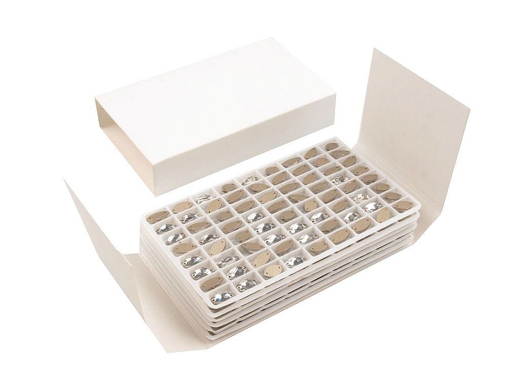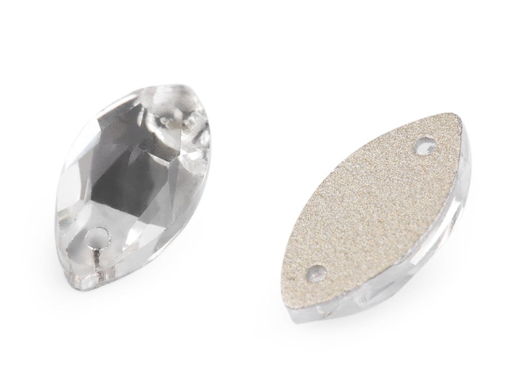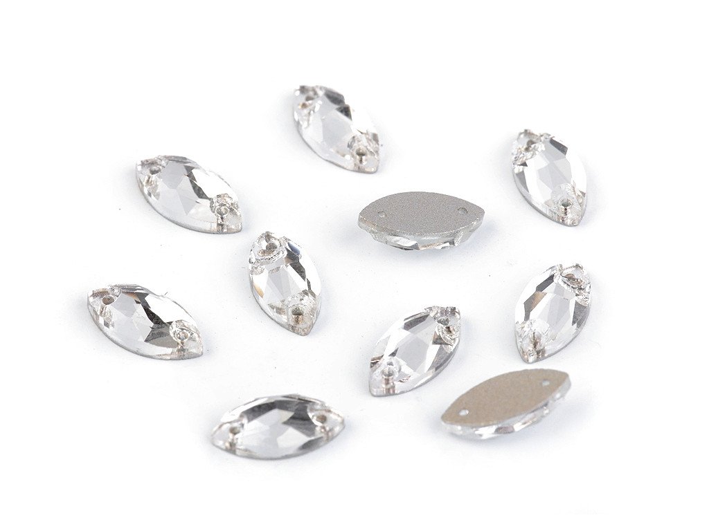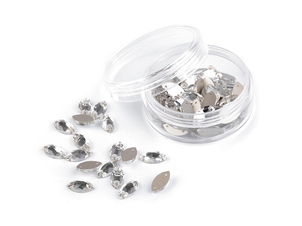Precizně broušené kamínky se efektně třpytí. Kamínky mají tvar navetky a v každém jsou dva otvory, které umožňují snadné našívání. Na rubové straně jsou opatřeny krycí barvou, která zabraňuje zbarvení dle přiloženého podkladu. Využijete je při výrobě šitých šperků nebo zdobení oděvů. Dokonale vyniknou na společenských šatech, halenkách a doplňcích, jako jsou kabelky, psaníčka, klobouky apod.
