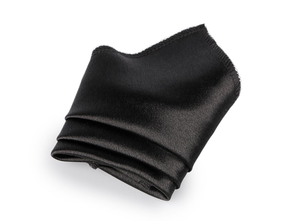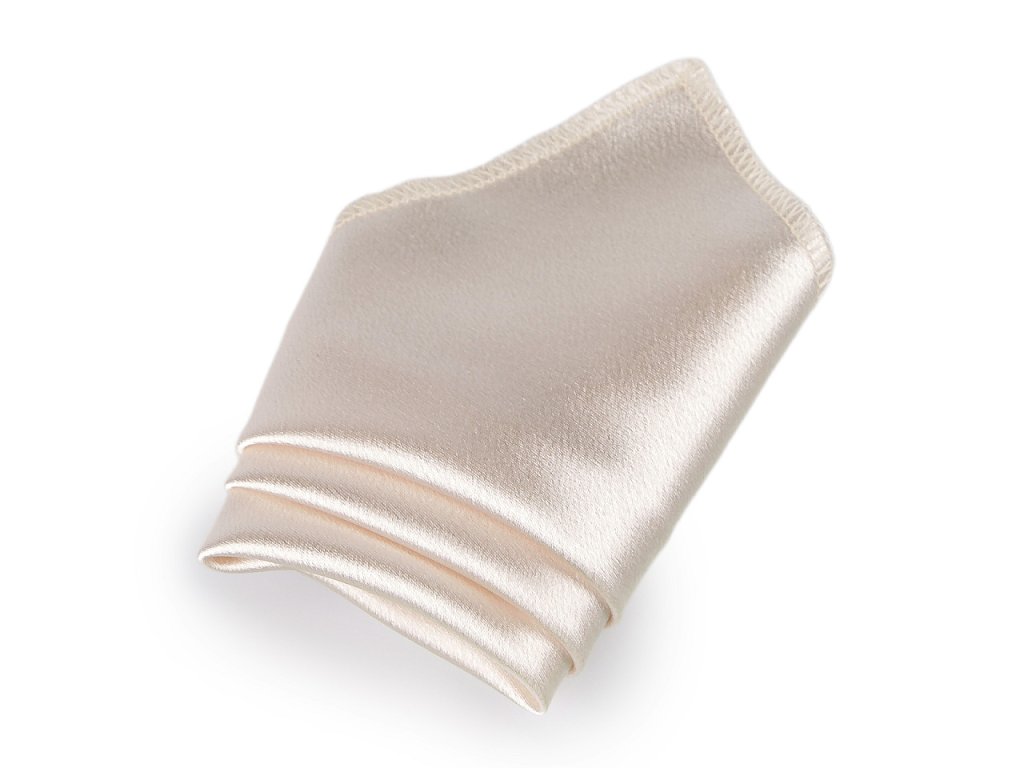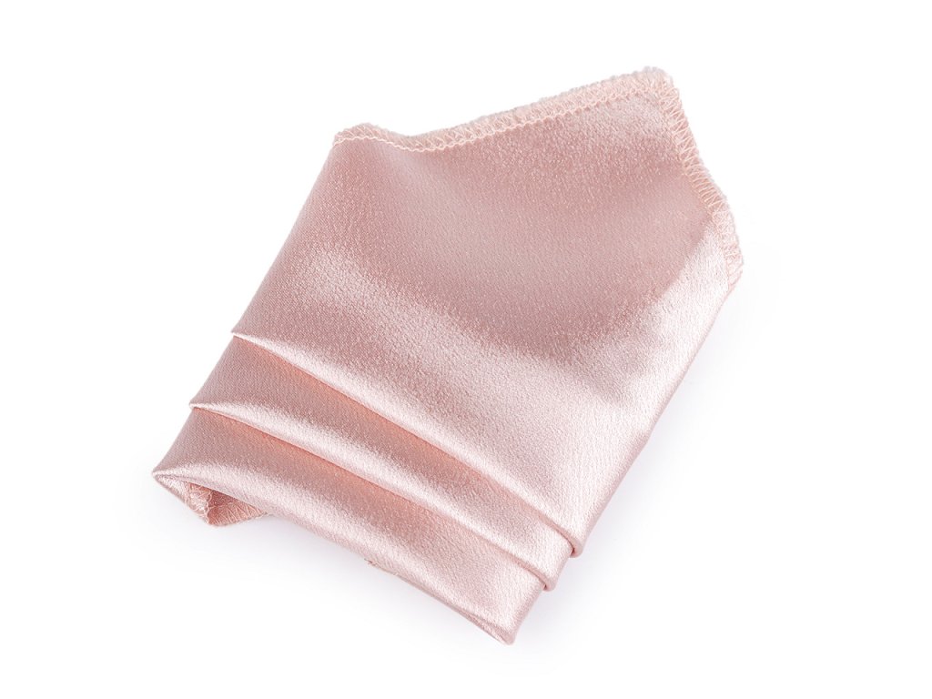 Kapesníček je jednostranný, olemovaný. Je ušitý z krešovaného saténu, který je jemně mačkaný, lesklý, příjemný na dotek, krásně splývá. Využít ho můžete také z jeho rubové strany, která je matná.