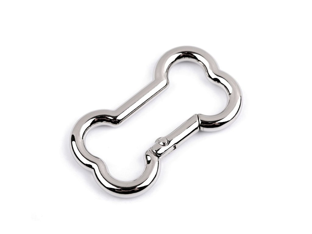 Kovová karabina ve tvaru kosti je velice efektní. Poslouží vám na sepnutí klíčů i k upevnění přívěsků na kabelky či tašky.