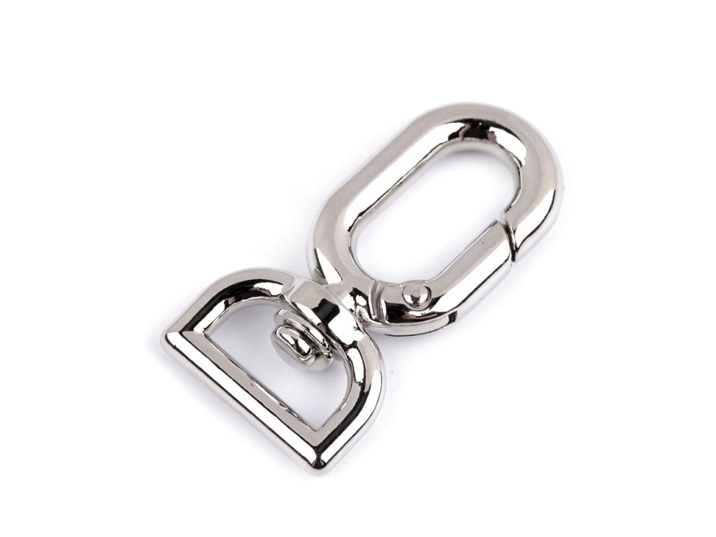 Kovovou otočnou karabinu využijete k připevnění popruhů ke kabelkám a psaníčkám. Je vhodná také na výrobu klíčenek a vodítek pro vaše čtyřnohé miláčky. Netradičně ji můžete použít i jako ozdobné zapínání na ramínka šatů.
