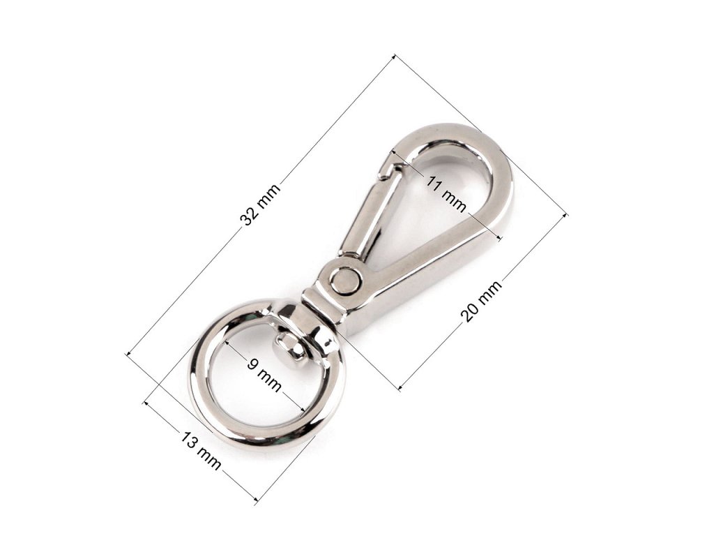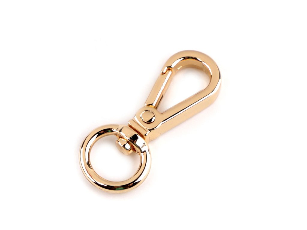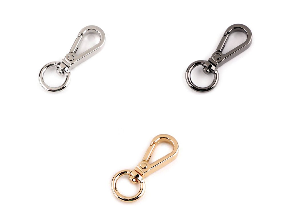Malá kovová karabinka je vhodná na připevnění řetízků k menším kabelkám či psaníčkům, ale také na různé přívěsky.