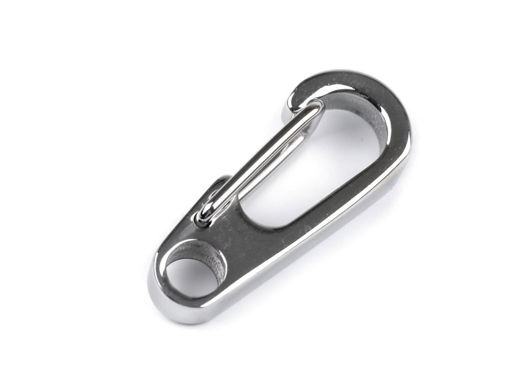 Kovová karabina je vyrobená z kvalitní nerezové oceli. Je masivní, pevná, vhodná k výrobě klíčenek, různých přívěsků na tašky, kabelky či batohy.