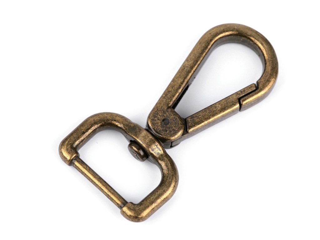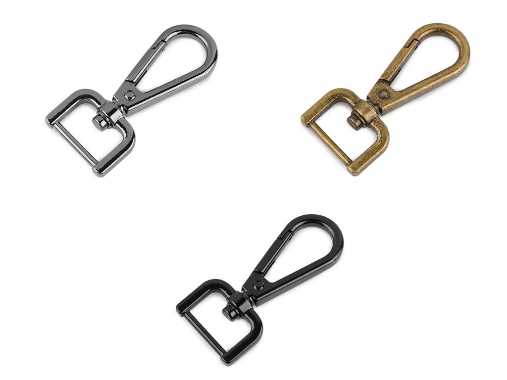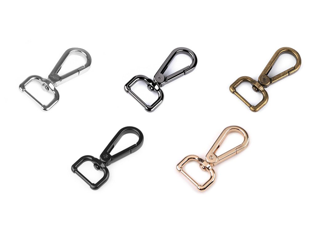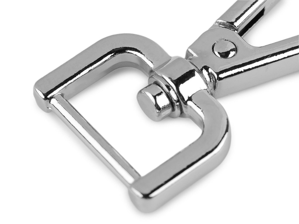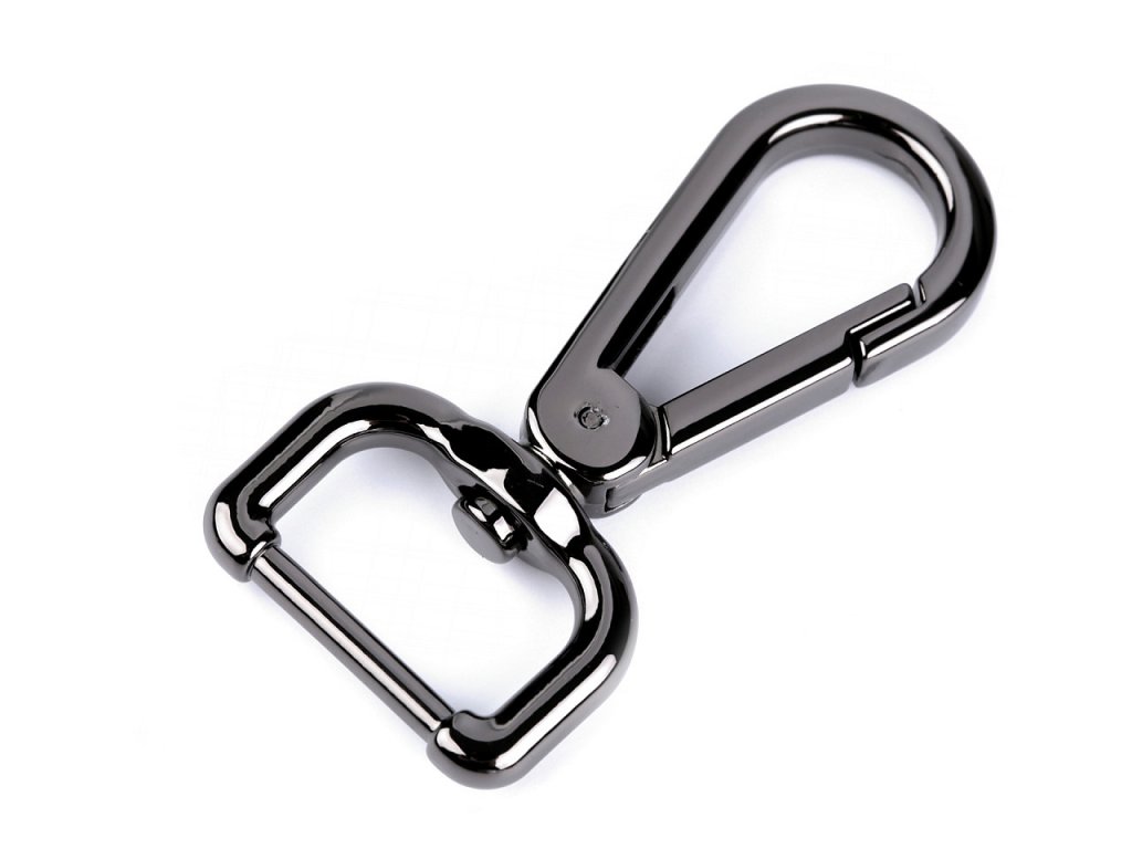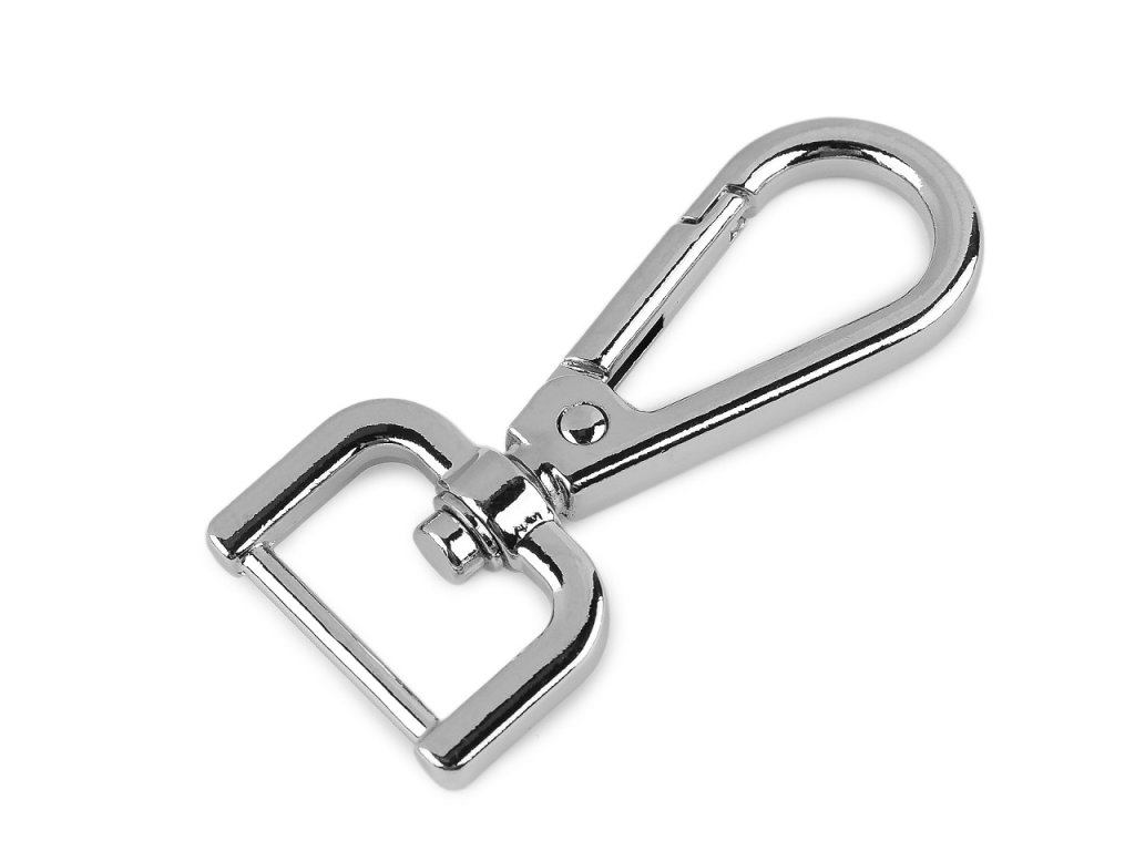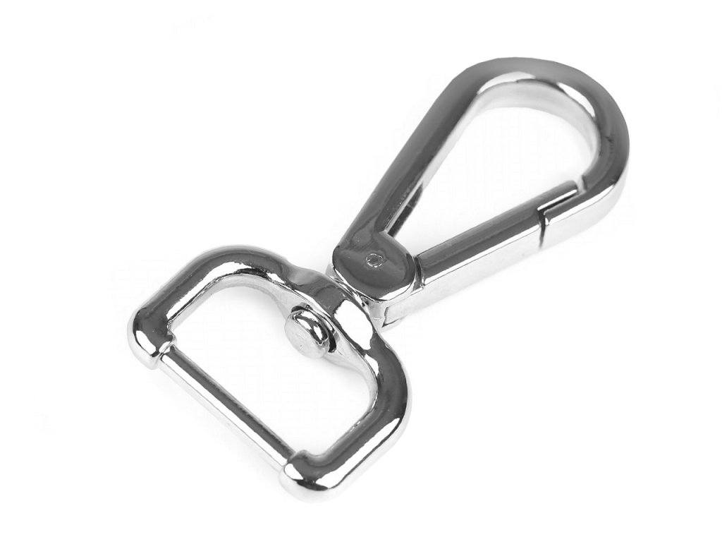 Kovová karabina je vhodná na upevnění popruhů k taškám a kabelkám. Můžete ji použít také na výrobu vodítek pro psy. Je otočná.