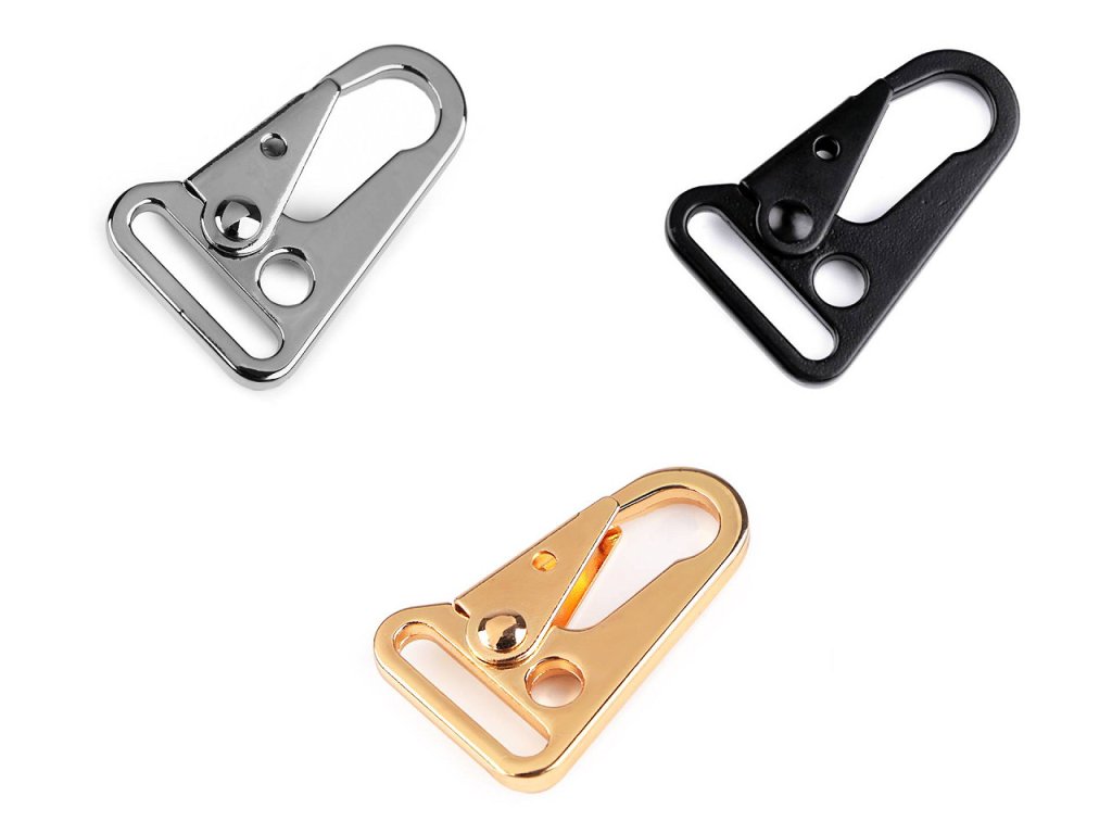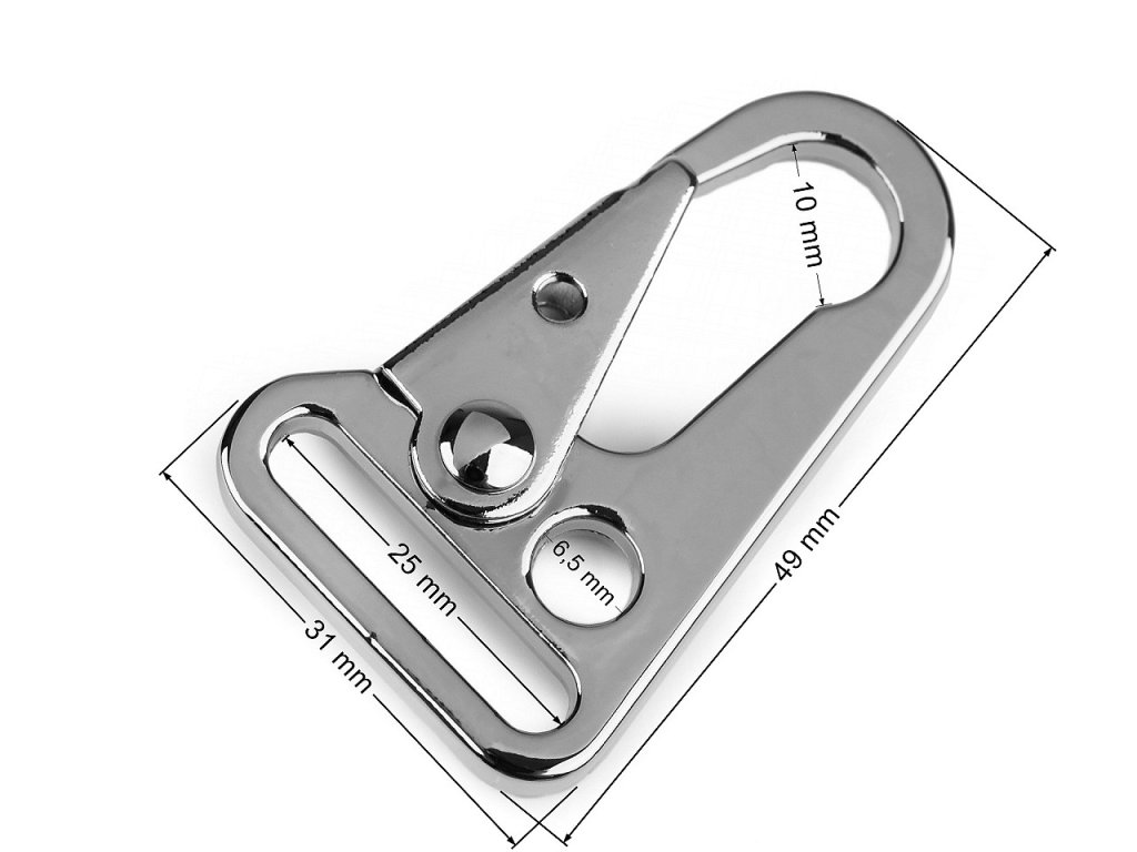 Bytelná kovová karabina je vhodná k upevnění popruhů k taškám nebo k výrobě klíčenek. Karabina není otočná. Je vyrobená z nemagnetického kovu, magnetická je otevírací část.