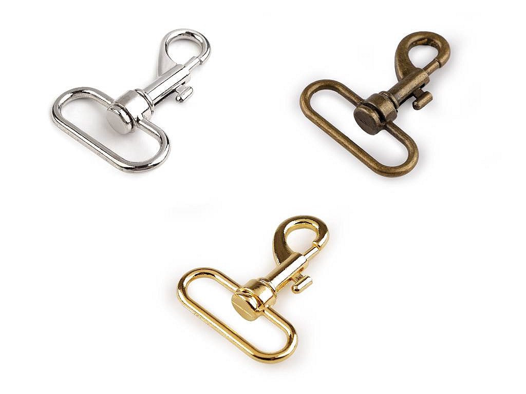 Kovovou otočnou karabinu vyžijete na upevnění popruhů k taškám či kabelkám. Díky své velikosti je vhodná také na výrobu vodítek pro psy.