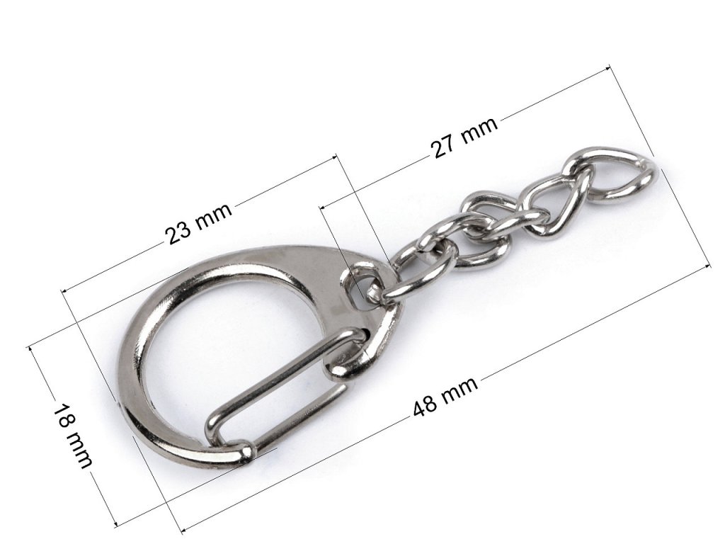 Kovová karabinka je vhodná na menší přívěsky a kabelky a na výrobu klíčenek. Není otočná.